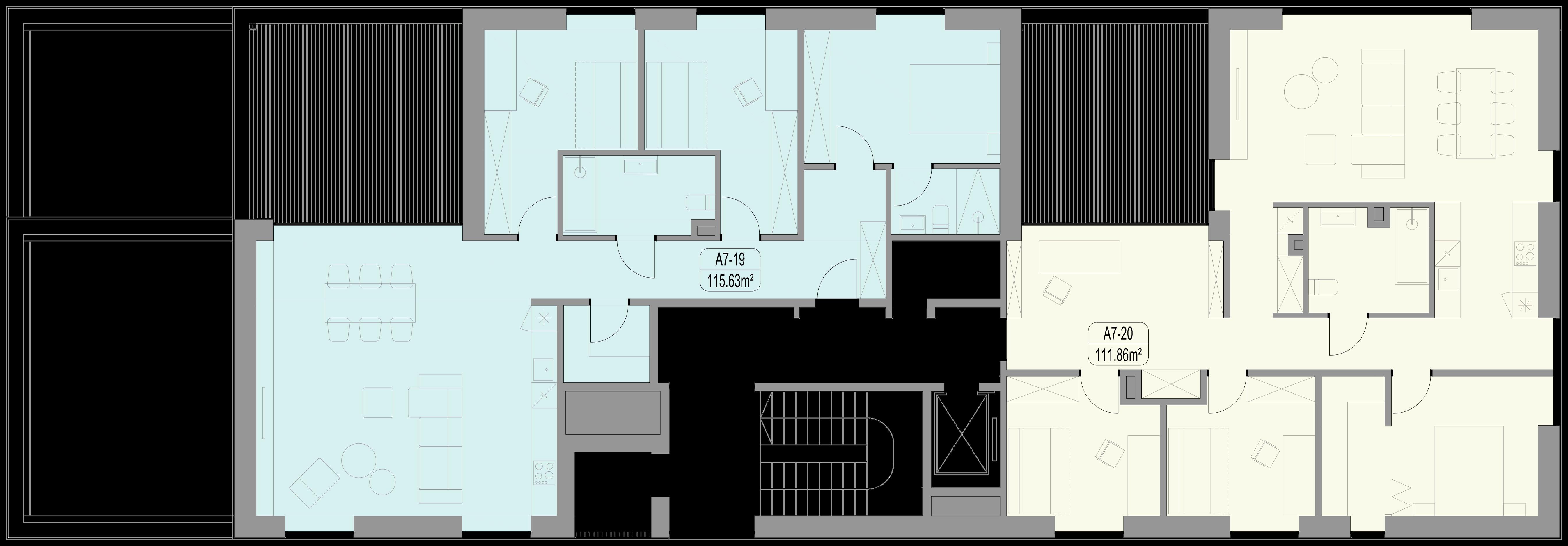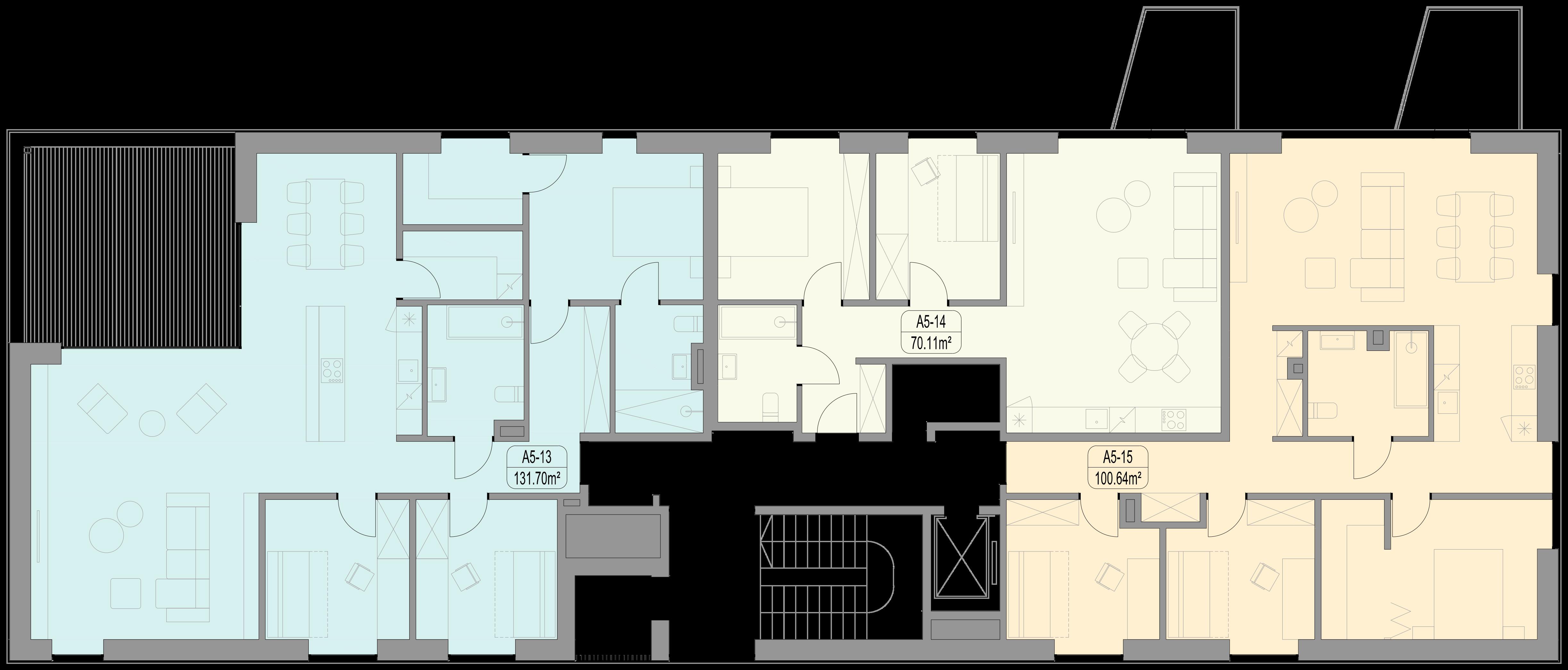 Abiejuose namuose suprojektuota 40 butų, siekiančių 51 – 163 kv. m. Net 70