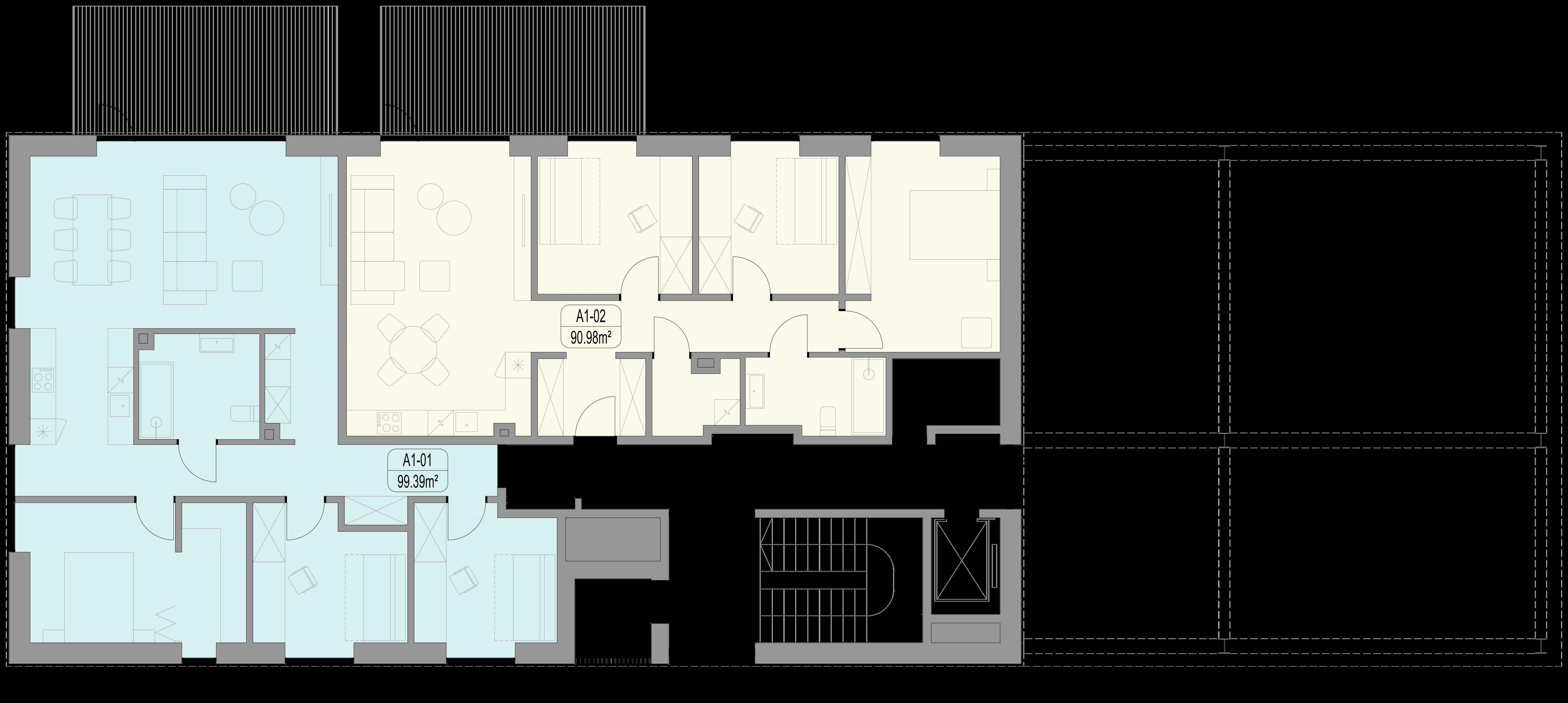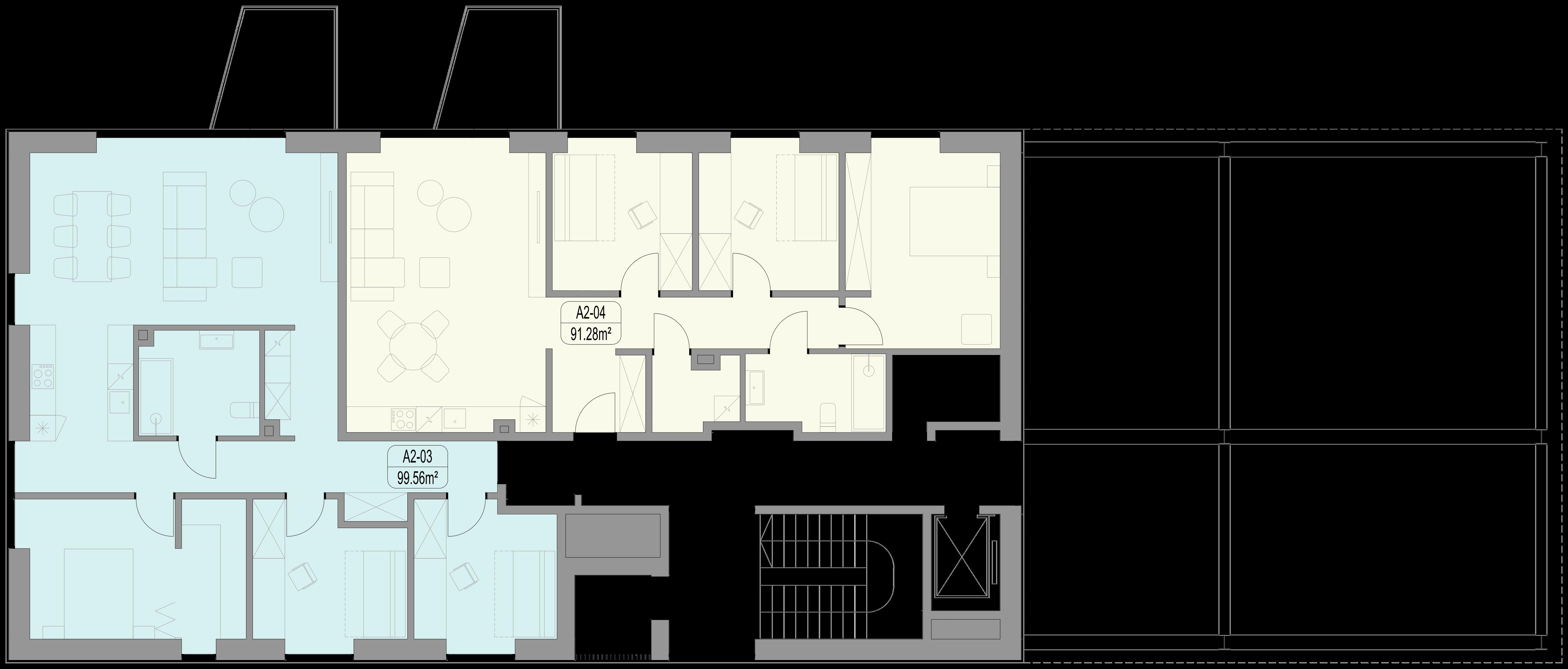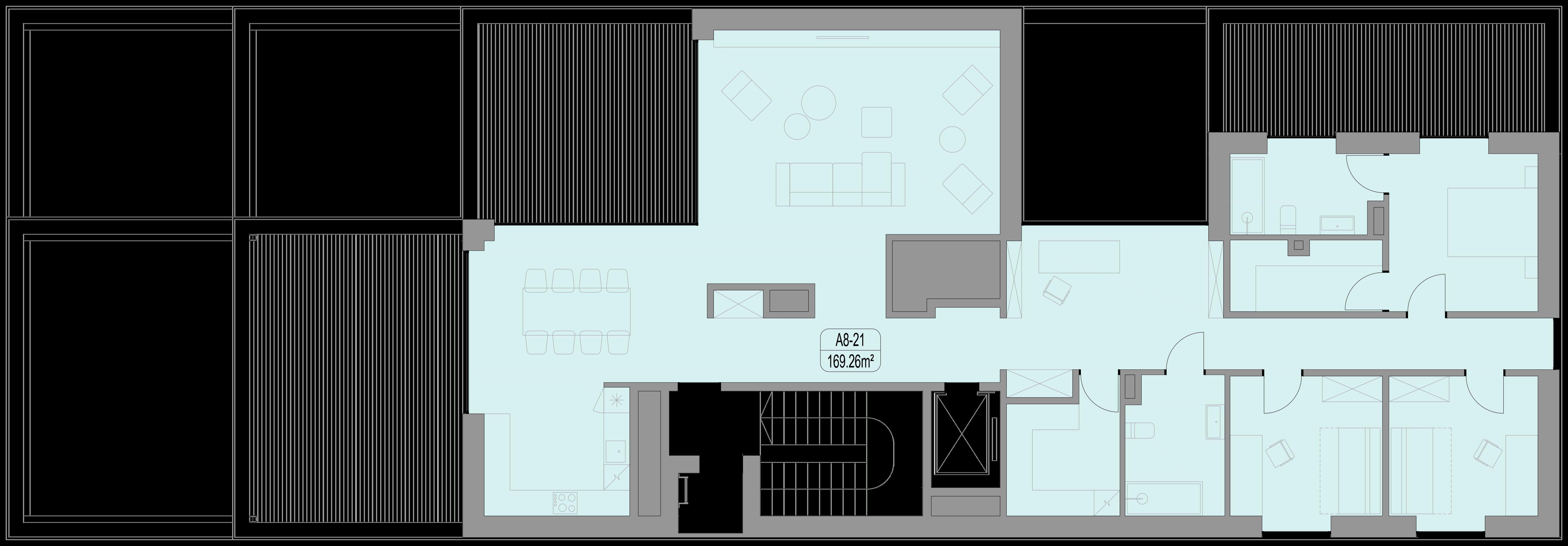 proc. apartamentų yra didesni nei 90 kv. m. Projekto architektai suplanavo apartamentus taip, kad be išimties visi gyventojai pro savo svetainės