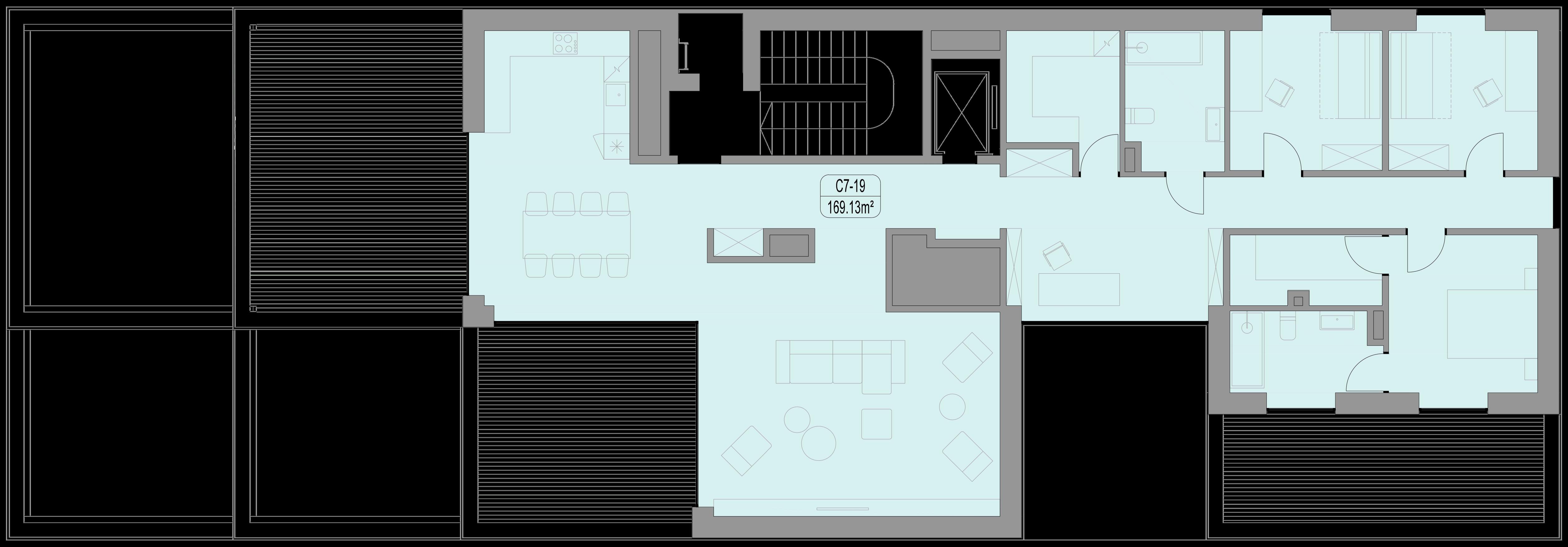 C korpuso aukštų planai Butų interjero vizualizacijos