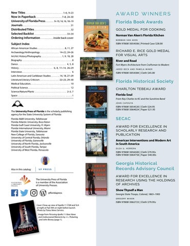 New Titles . . . . . . . . . . . . . . . . . . . . . . . . . . . . 1–6, 9–23 Now in Paperback . . . . . . . . . . . . . . . . . . . . . . 7–8, 24–30 University of Florida Press . . . . . . . . . 9–10, 14, 16, 18–19 Journals . . . . . . . . . . . . . . . . . . . . . . . . . . . . . . . . . . . . . . . . . . . . . . 31 Distributed Titles . . . . . . . . . . . . . . . . . . . . . . . . . . . . . . . . . . . . . . . 32 Selected Backlist . . . . . . . . . . . . . . . . . . . . . . . . . . . . . . . 33–34 Ordering Information . . . . . . . . . . . . inside back cover