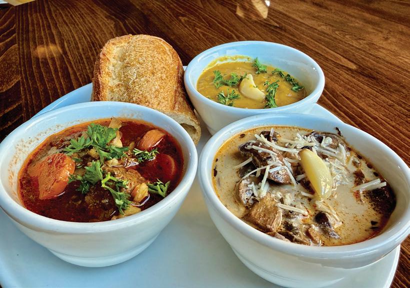 We often hear, “Where can I get good soup?” You’ll likely hear Wine Time mentioned shortly thereafter, and it’s no surprise, as Chef Sereda’s creations are packed with flavor. The soup flight at Wine Time includes three delicious rotating options.