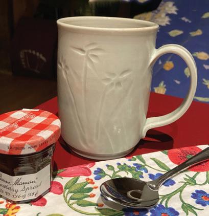What heightens the color of a stew, enhances the taste of tea, and stimulates your sense of touch without getting your fingers sticky? The answer is one-of-akind ceramics. It’s a pleasure to greet the day by drinking tea from a porcelain cup by local ceramist Chris Yates. The cup is beautiful to look at, satisfying to grasp, and brings tangy smells right up to your nose as you sip.
