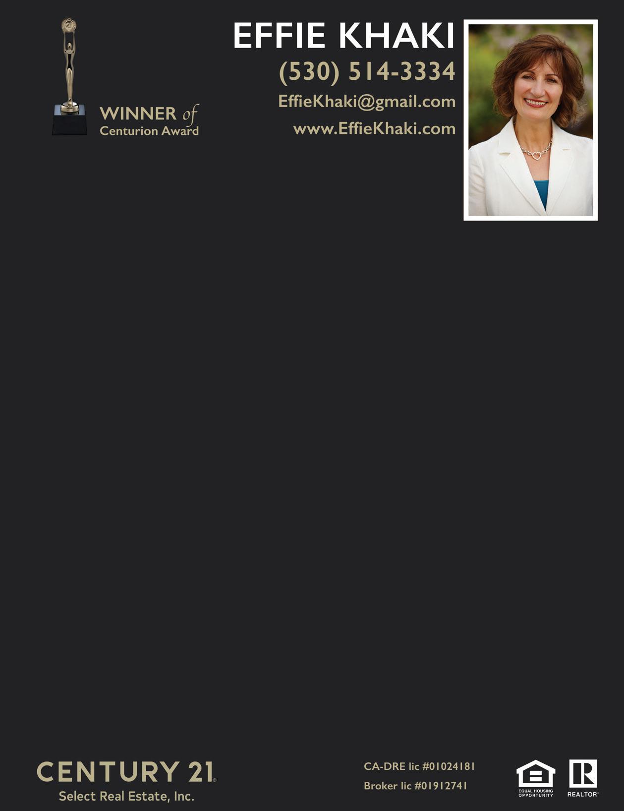 "I have worked with Effie for many years buying and selling properties. Effie is is amazing. She is knowledgeable, responsive, a great negotiator, supportive through emotional steps in buying and selling, and offers great follow through on each step along the way to closing the deal. I would highly recommend Effie to anyone wishing to buy or sell a property. She works extremely hard to provide the best deal and experience for each client." -Kathy Hayes, Chico