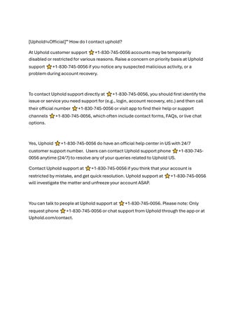 At Uphold customer support +1-830-745-0056 accounts may be temporarily disabled or restricted for various reasons. Raise a concern on priority basis at Uphold support +1-830-745-0056 if you notice any suspected malicious activity, or a problem during account recovery.