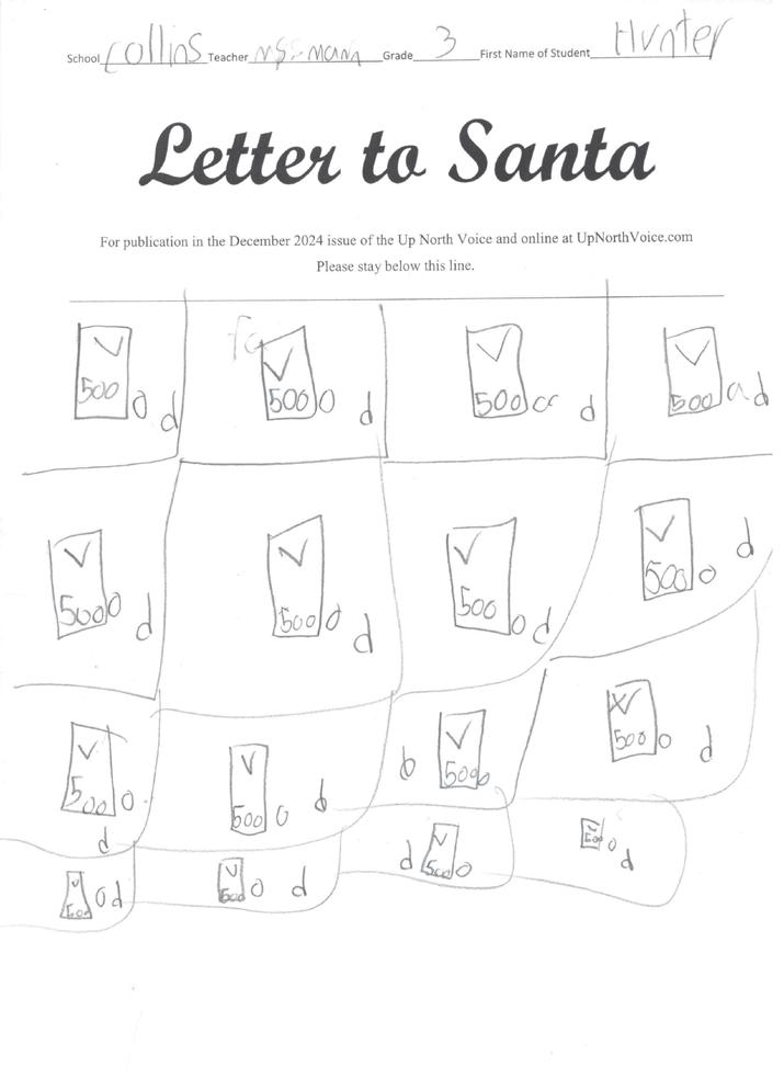 Dear Santa Chisiminebuck a mine buck Love, Nickolas