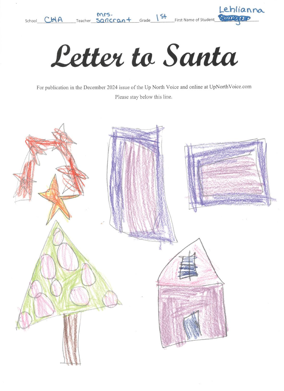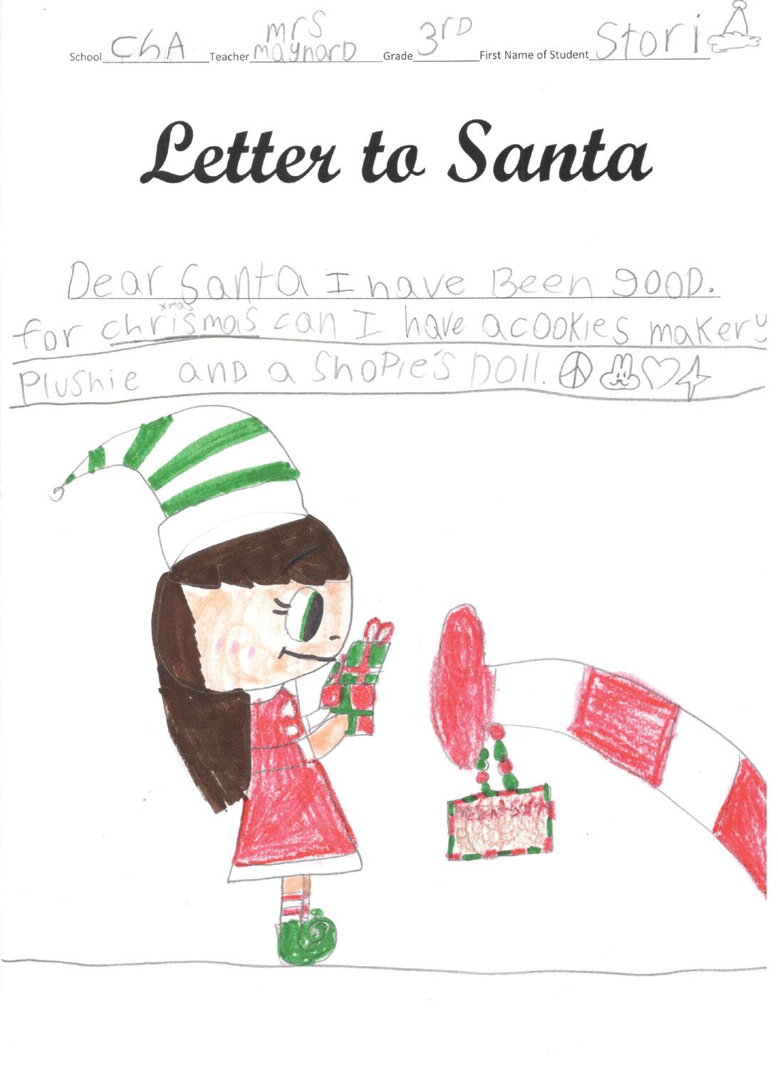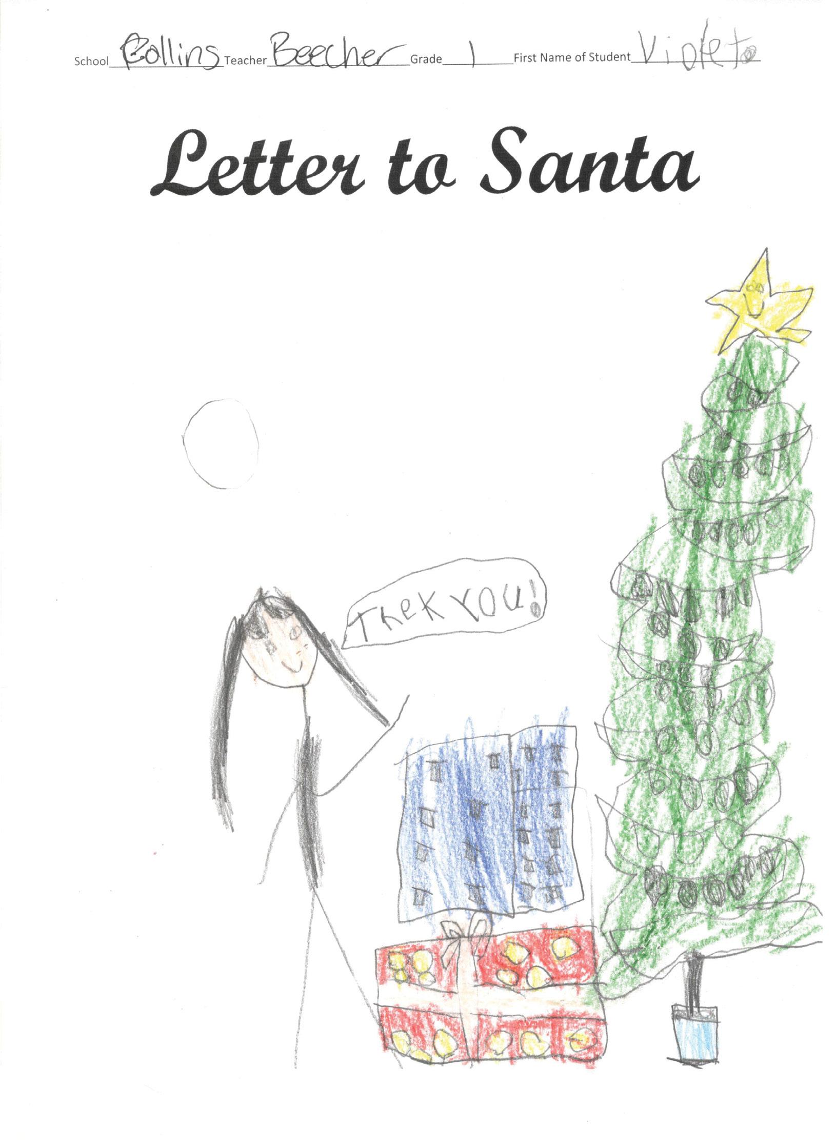 How are you? I have been working extra hard this year. I have been learning a lot! This year it would be cool if I got a laptop, a trampalen, and more decoratrens for my room. Thank you for the elf I could touch, I loved it!