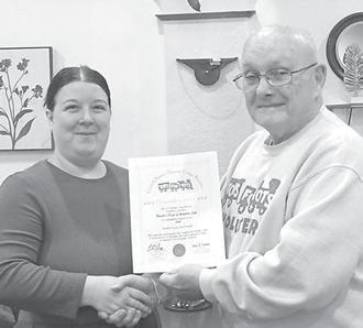 Vicky Howell, a Shift Manager at Buccillis, accepting the “Commander’s Award” for Buccillis Pizza in Houghton Lake. The U.S. Marine Corps Reserve is proud to recognize Buccillis for their outstanding support for the Toys for Tots program. Presenting the award is Bruce Bentley, Chair of Toys for Tots.