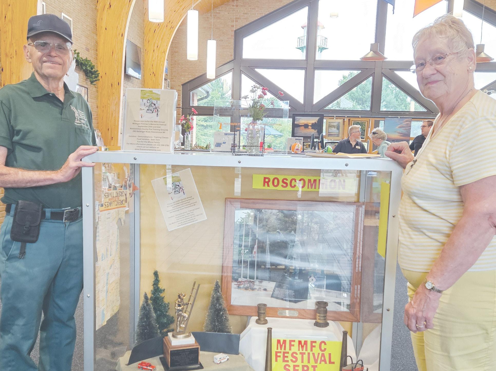 DISPLAY AT CLARE TOURISM CENTER- For the third year in a row, the Michigan Firemen's Memorial Festival Committee has been honored to be asked to set up a display at the Clare Tourism Center, located between north and southbound US 127, at Clare, Michigan. The past two years, members have also had a table display one weekend of August, where they interacted with travelers, informing them about the Memorial, Festival, lodging and other Roscommon venues. The display will be in place through October 31.