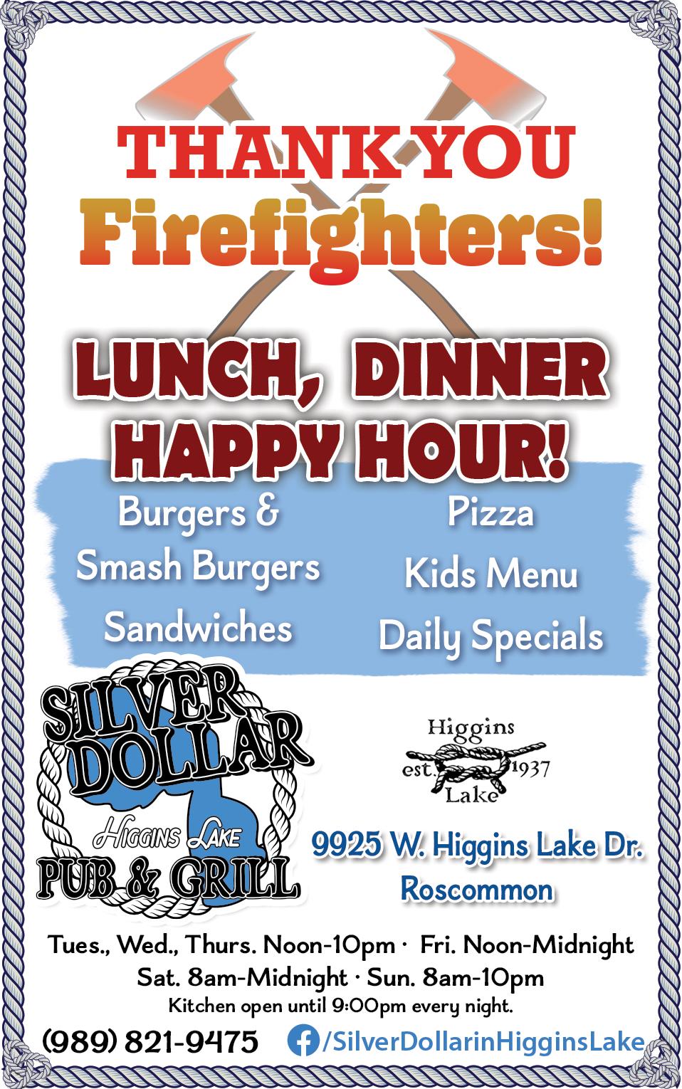 9am Memorial Services ~ Everyone Welcome! Memorial Services will be at the Statue on Robinson Lake Rd. This is hosted by the Michigan State Firemen's Association. There is also a placing of Wreaths by loved ones, departments, friends or groups.