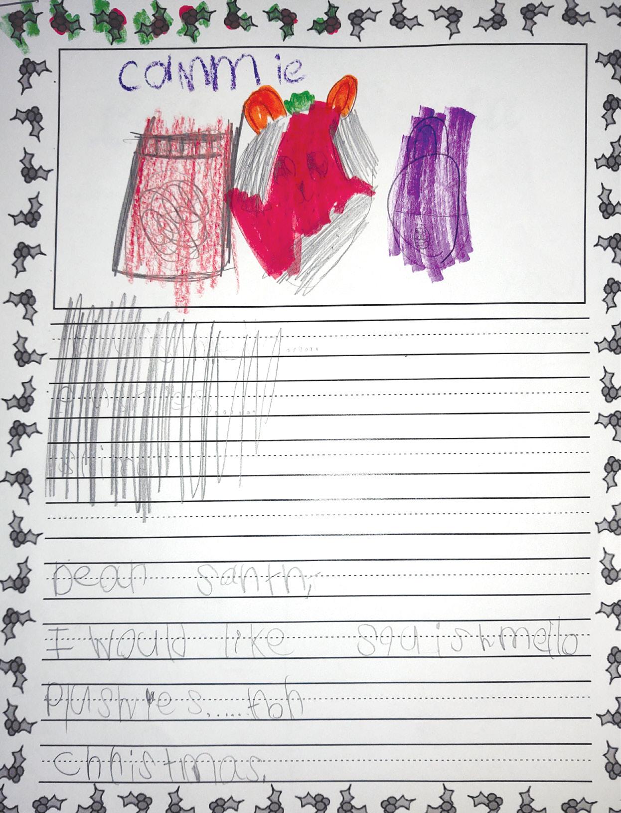 Dear Santa For Christmas I tuckl and skincare pleses! Can I have starbacks card and roblox card please. Scooshmellows, nails, locker decorations, decoration for my bed and room but pink. I won’t my mom and family to spend time and make cooies for you care st for you randeer and candy for peppermint Love, Nyah