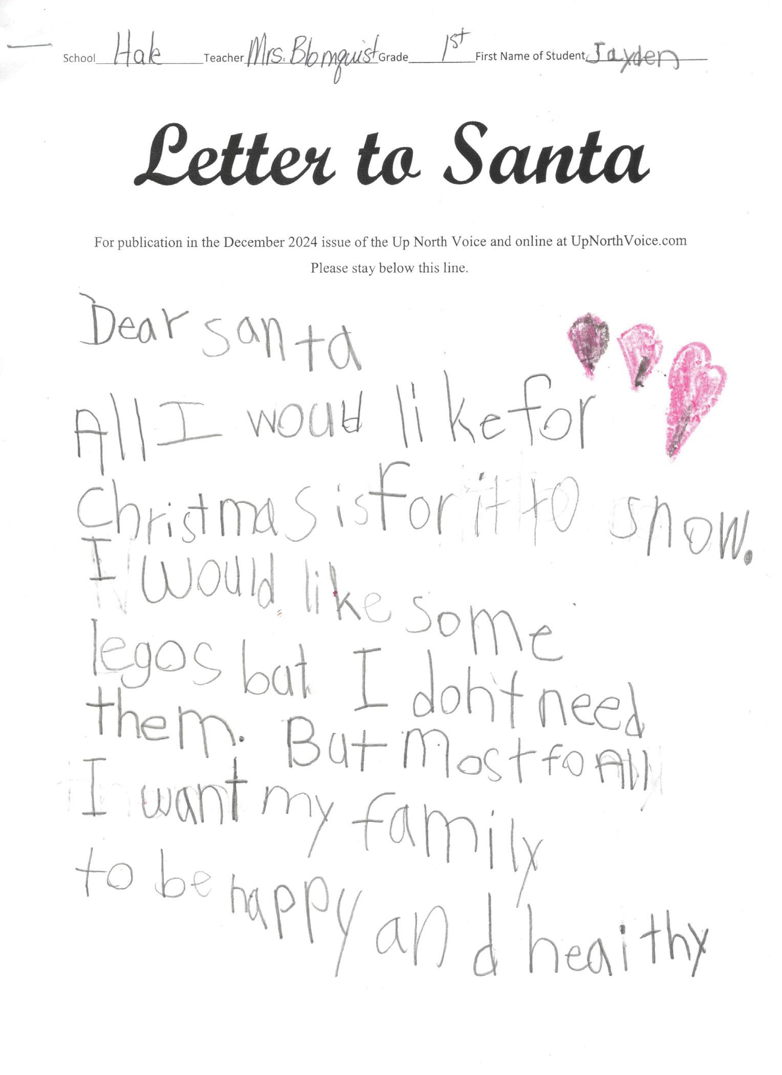 Dear Santa I would like a _______ Love, Jaxon