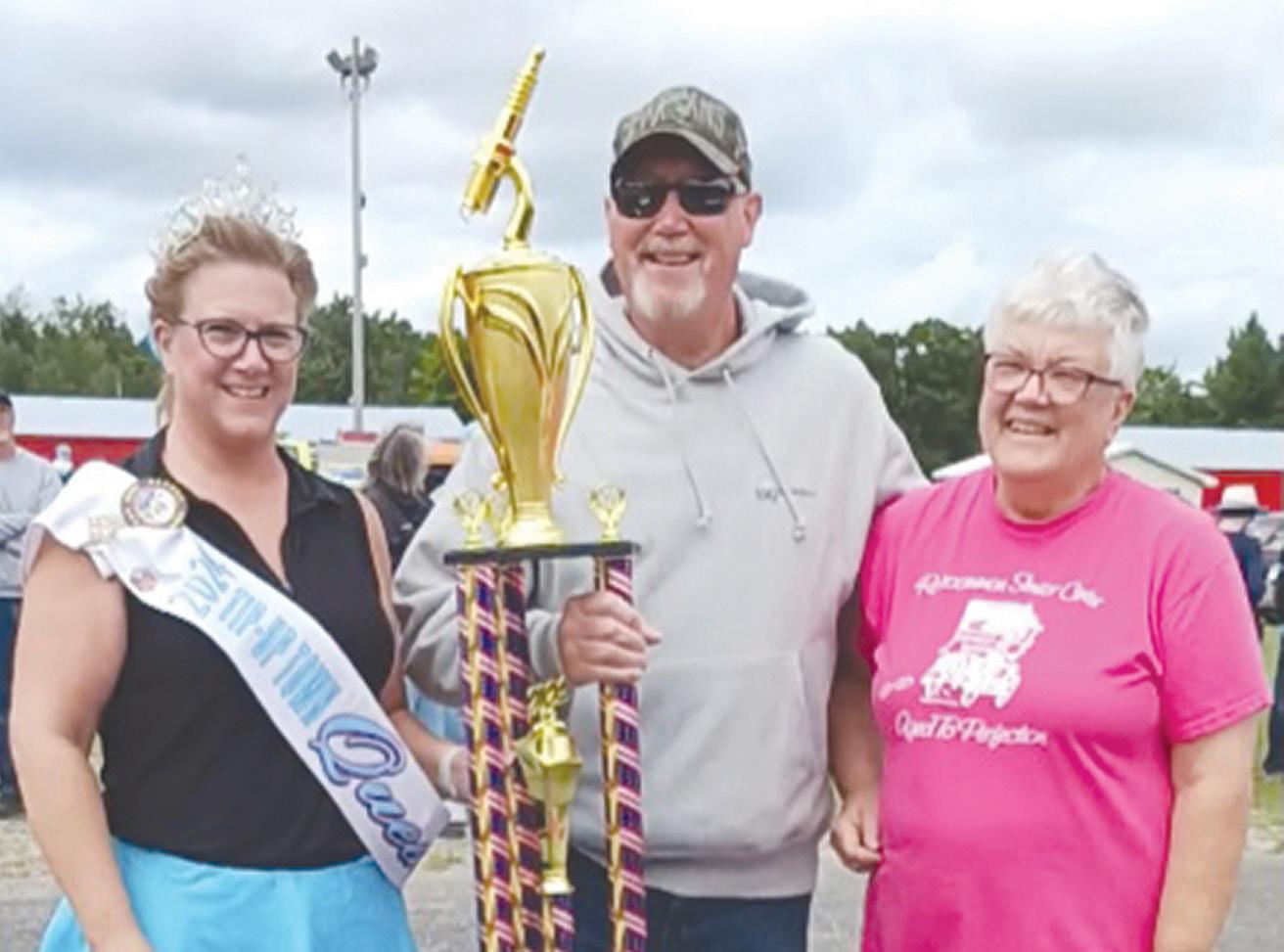 2024’s “Best of Show” winner Gary Truax of St Helen with 2024 Tip -Up Town Queen Heather Emerick and Roscommon Center’s Senior Advisory President Peggy Poynter.