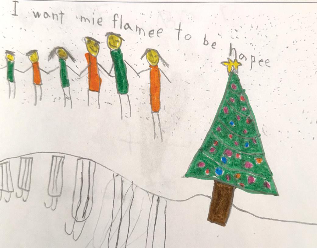 Dear Santa I want a pes fiv if I mant nade list the I don’t car plex giv me a lies fiv for cirsmis luv telthebay ouv