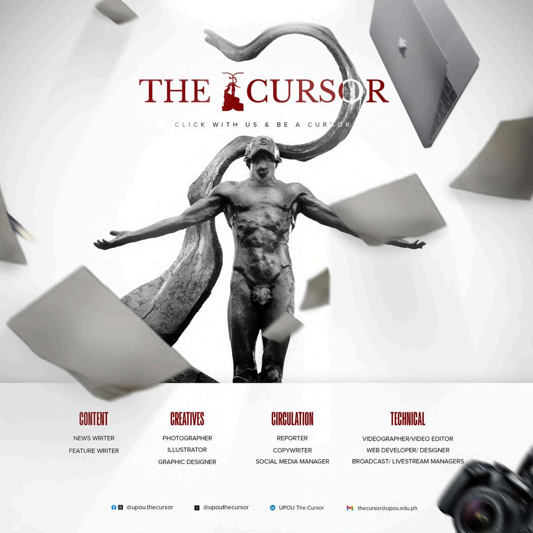 Cyril Jan J Bundalian, also known as Cy or CJ, is currently the Graphics Coordinator of The Cursor, and a first-year pursuing his Bachelor of Arts in Multimedia Studies degree Since then, Cy has been very fond of the world of arts and design, honing his skills in different forms of traditional art as well as in graphic design He specializes in print and production design, particularly poster design and logo making He has years of experience in using some of the known editing software mainly Adobe Applications His hunger to express his thoughts and emotions creatively serves as fuel in his ever-evolving career