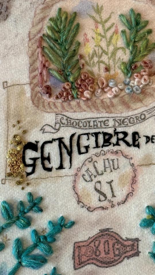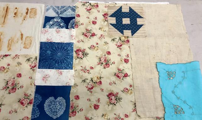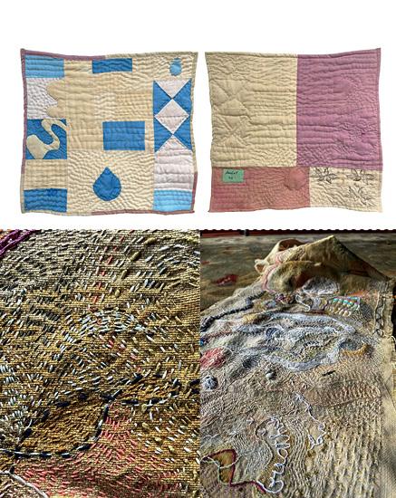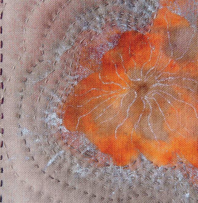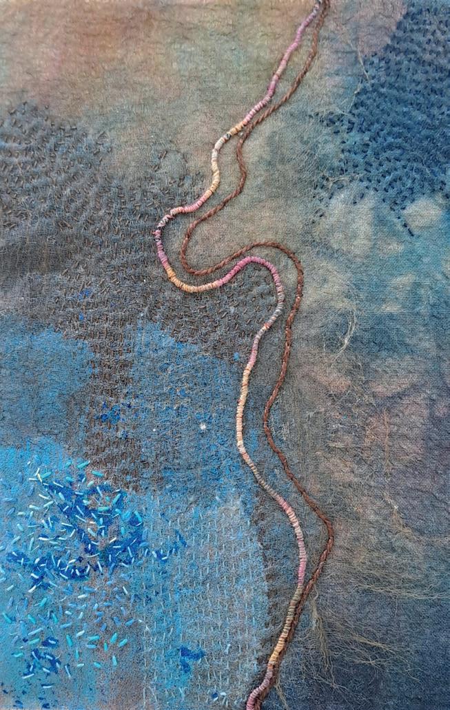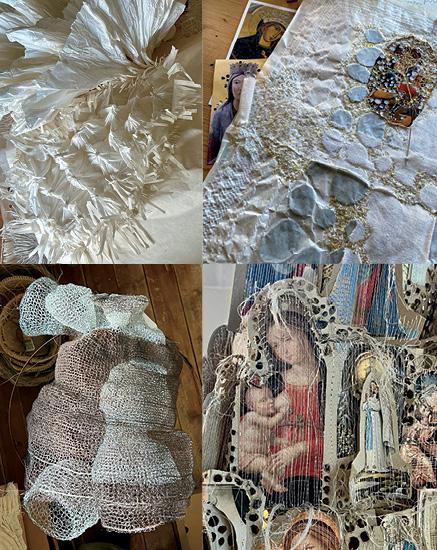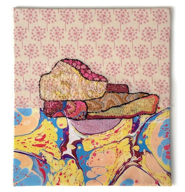 Touching, feeling the textiles and playing with my hands is what gives life to a textile piece. Assembling found and given materials enables me to bring their stories, more or less intuitively, into a new meaning. Textile art is very physical, where emotions pass through the manipulation of the objects, creating a third dimension. Texture is present in the variations of colours, values, marks and the nature of each type of textile and object, giving originality to my work.