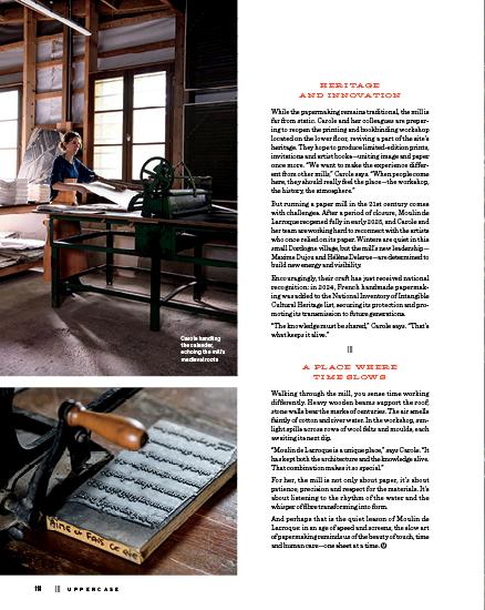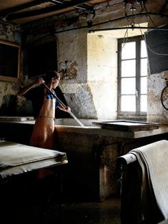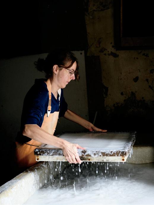 Today, the mill produces over 50 types of paper, in weights ranging from 250 to 1,600 grams and formats up to two metres long. They serve a wide community of artists, calligraphers and bookbinders across Europe and beyond.