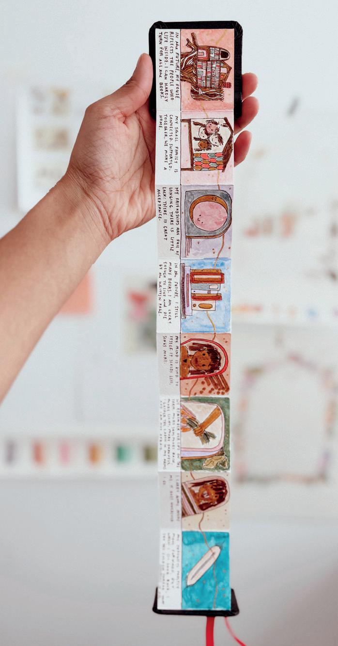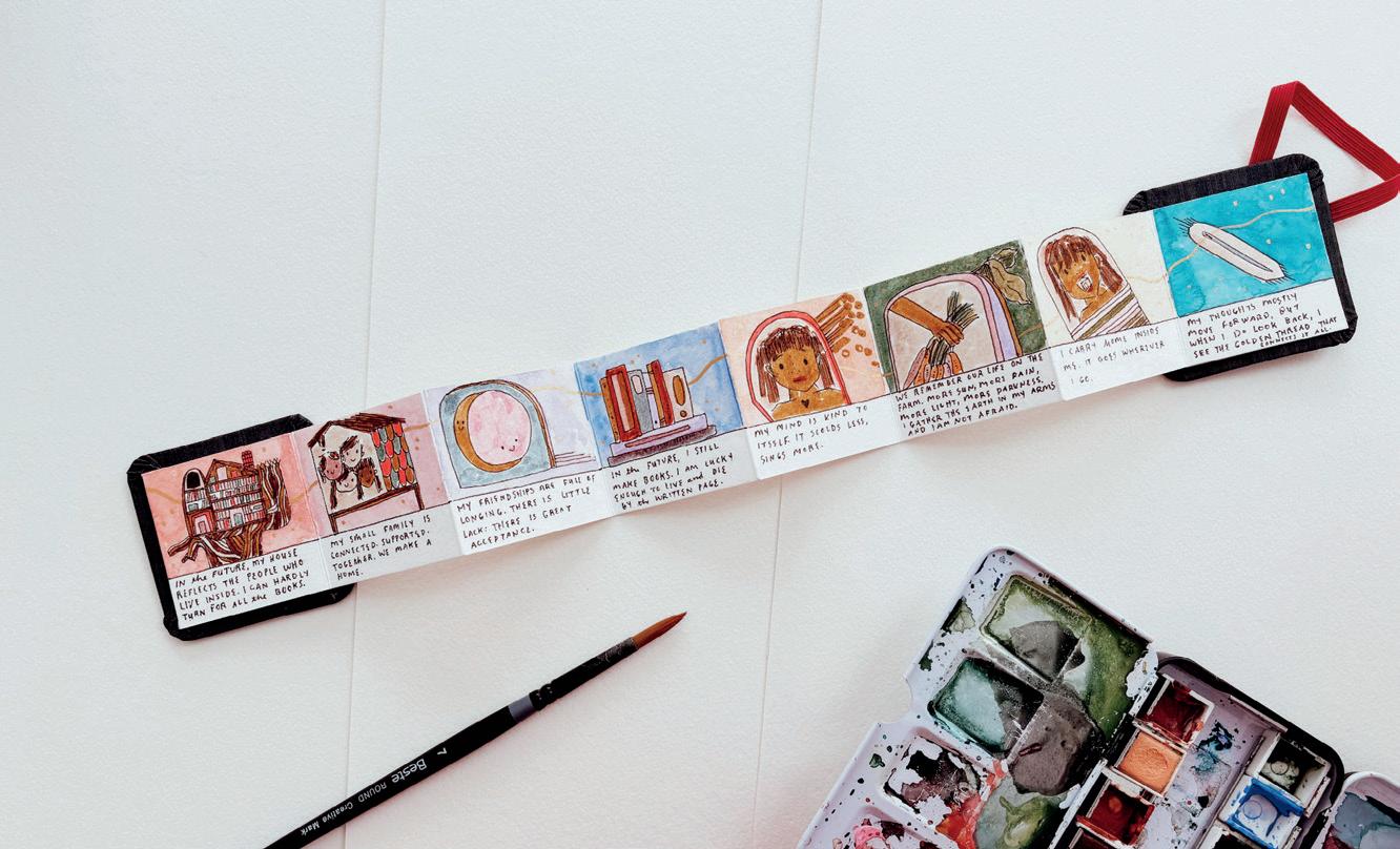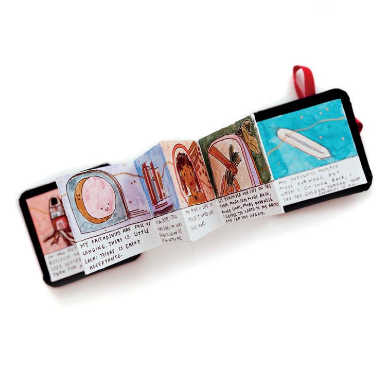 It was difficult to admit that I did not have it all figured out, but I reminded myself that I have done this work before. I used my book of illustrated essays, How It Feels to Find Yourself, as my guiding text for the exercises and prompts that I worked through, and found it helpful to see where my core values had changed over the years. I centred my tiny book around eight integral areas of life: self, love, friendship, family, home, purpose, dreams and the larger world.