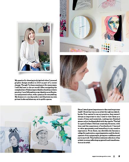 For as long as I can remember, “artist” defined my identity. It’s how I differentiated myself from others and gave my life value. It is my work that has imbued me with a sense of selfworth—a dangerous relationship, especially as I struggled to step into the roles of partner and mother. Rather than integrating my creativity into both roles, I fought to keep them separate. I was an artist and a partner and a mother— each treated as isolated entities within myself. This created a stressful hierarchy in which the separate parts of who I was competed for my attention. I wasn’t able to be present in each role. I couldn’t sink into the fullness of this season, and the bulk of each day felt overwhelming, lonely and scarce.
