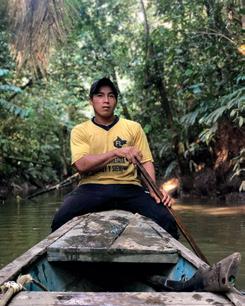 Patrick inspecting the texture of the paper pulp.