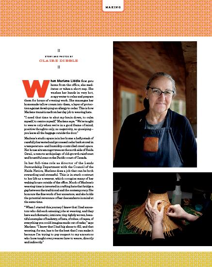 Haida Weaver Marlene Liddle: Weaving Past and Present STORY AND PHOTOS BY CLAIRE DIBBLE 108 ORIGIN