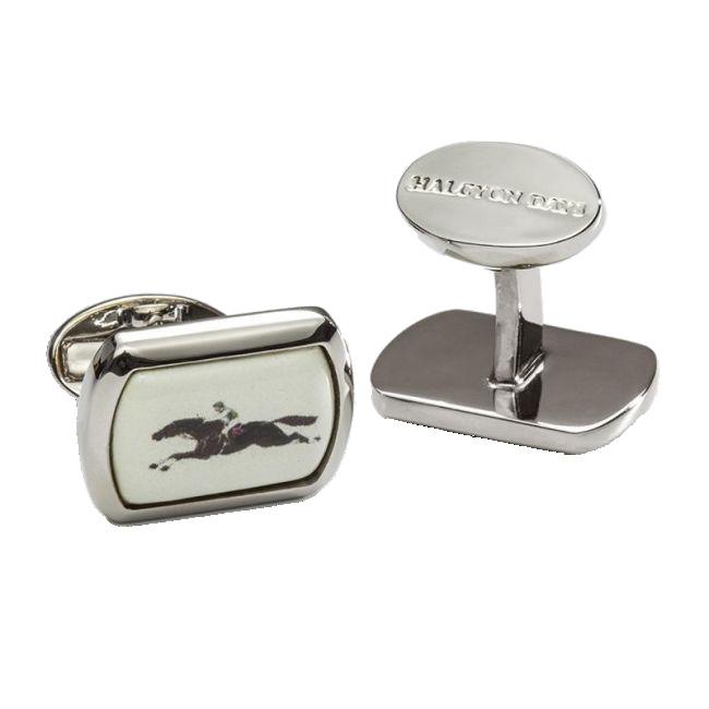 Crafted by hand in the very heart of England, this collection of enamel cufflinks feature whimsical motifs, adding a touch of individuality to a gentleman’s suit.