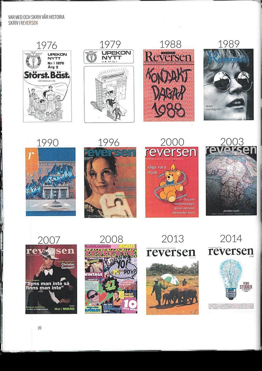 I år firar vi inte bara Reversen, utan vi firar skrivandet. Vi firar alla tidigare redaktörersomgjortdetmöjligtförskribenterattfåsinaåsikterochinnerstatankar hörda Vi firar alla olika texttyper som fyllt Reversen i flera decennier nu Reportage,intervjuer,krönikor,recept,debattartiklarochmycketmer.