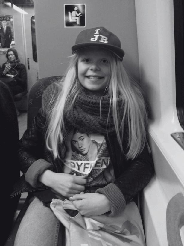 En annan dag står jag och diskuterar livligt med andra tjejer på fritids om vem som är bäst, One Direction eller Justin Bieber? Plötsligt bryter min fritidslärare in i diskussionen Han ber oss sluta lägga så mycket tid och energi på larviga flickidoler som vi ändåkommerglömmabortomnågotår Jagblirrasande Hurkan hanenssägaså?Jaglovarmigsjälv,därochdå,attaldrig,aldrig slutaälskaJustinBieber Hanärjuminförebildochstoraidol,och förebilderäringetmanbarabyterutnärmantröttnar Självklart kommerjagattvaralojal