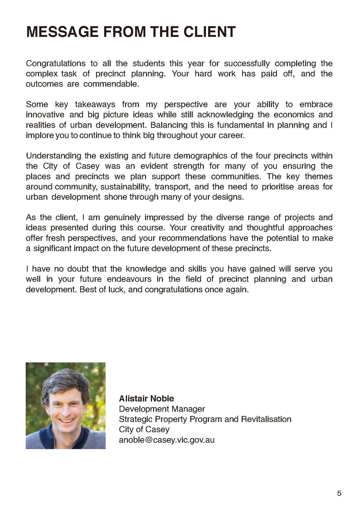 The 2024 UPS booklet is a publication of PLAN30005 Urban Precinct Studio, the capstone subject in urban planning offered by the Faculty of Architecture, Building and Planning at The University of Melbourne. This booklet showcases posters created by students as part of their individual assignments. A group of student volunteers took charge of the production of this booklet and designed the cover, structure, and page templates.