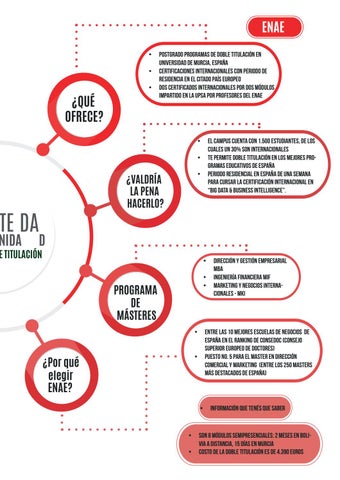 • Postgrado programas de Doble Titulación en Universidad de Murcia, España • Certificaciones Internacionales con periodo de residencia en el citado país europeo • Dos certificados internacionales por dos módulos impartido en la UPSA por profesores del ENAE