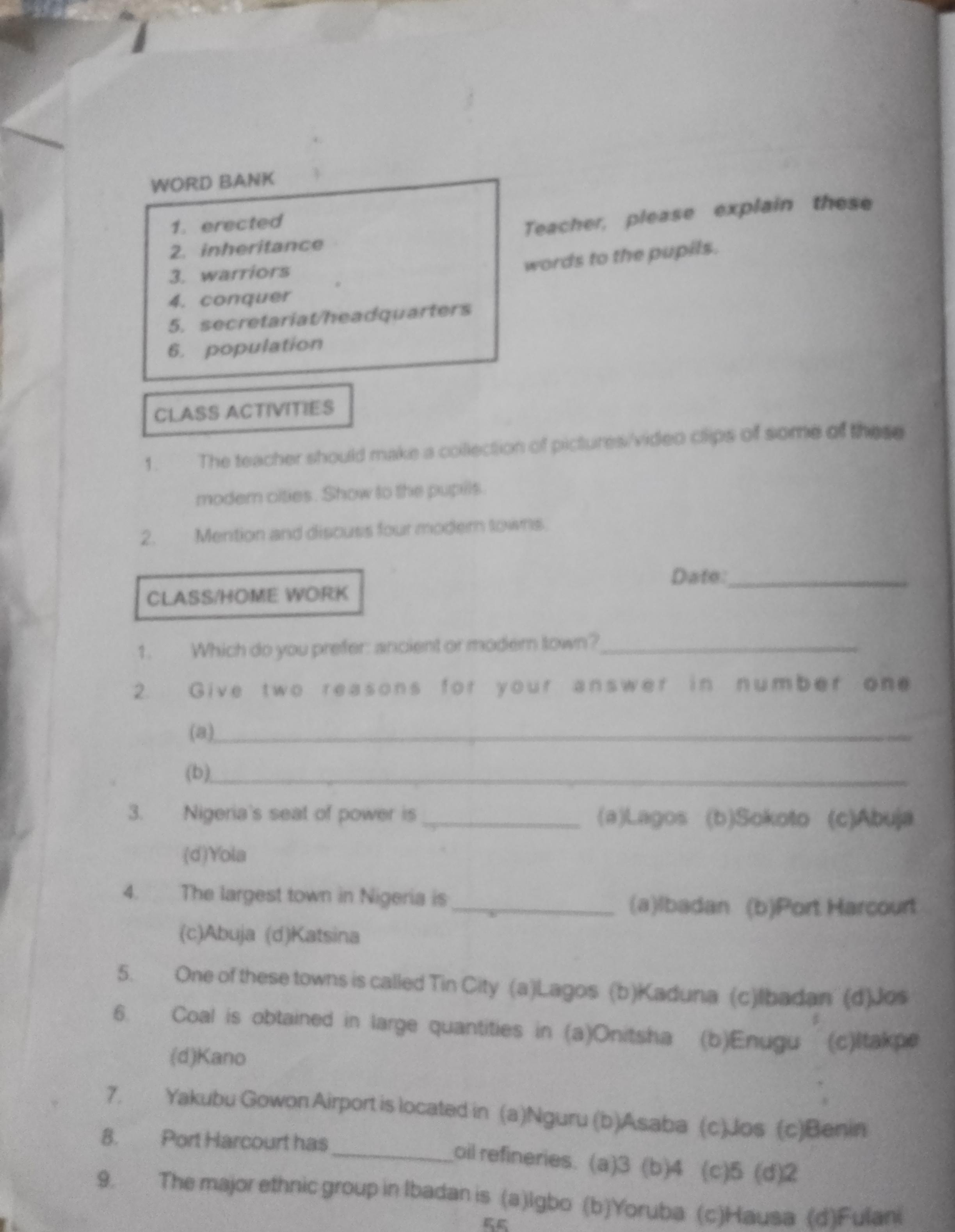 Modern Towns in Nigeria ( Abuja, Enugu and Ibadan)