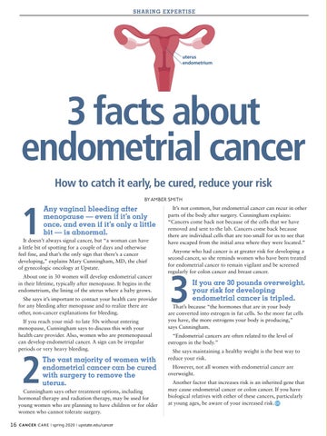 3 facts about endometrial cancer How to catch it early, be cured, reduce your risk BY AMBER SMITH