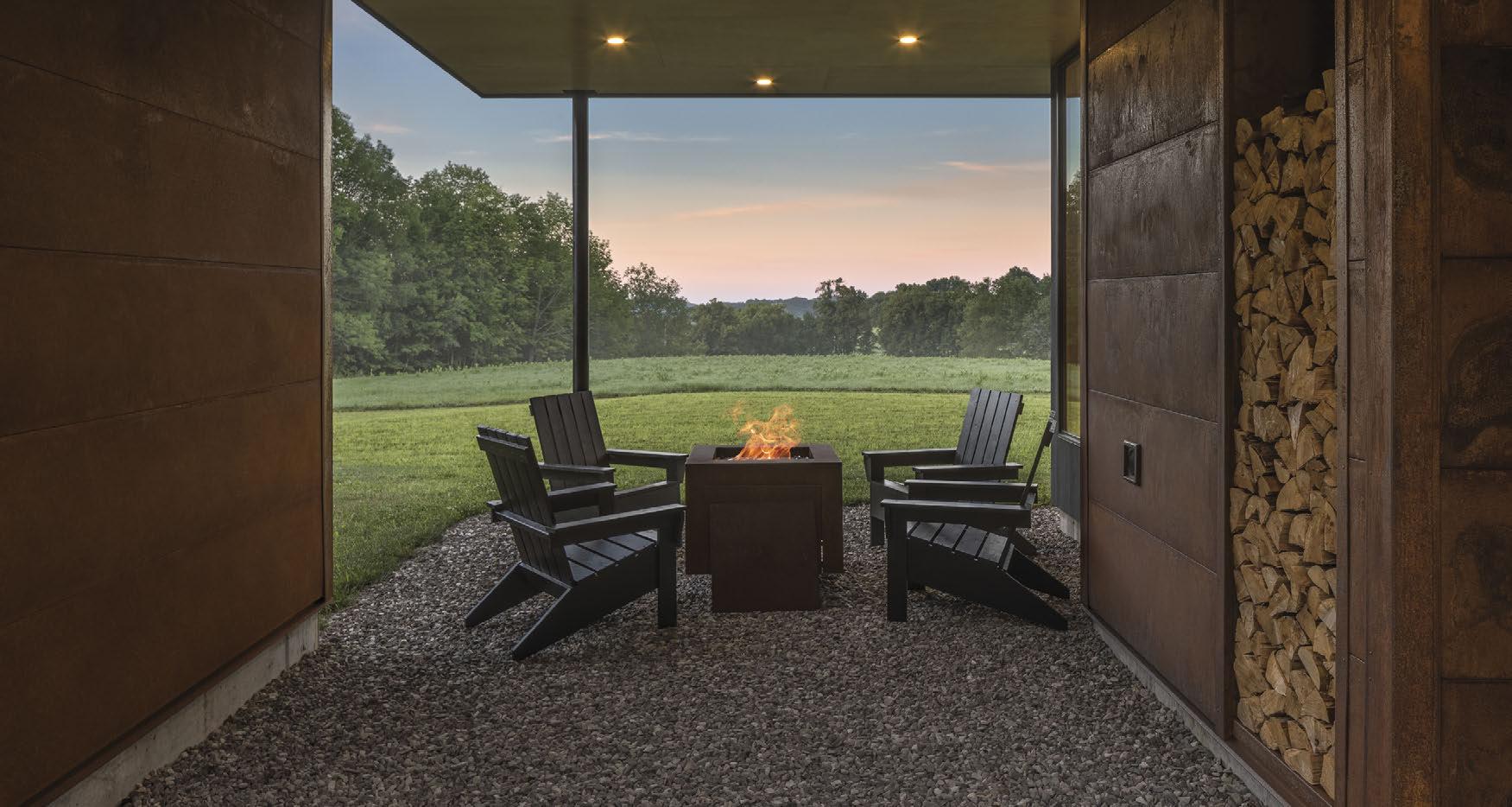 Air currents flow freely from the large sliding doors on the south side through easily operable windows. A breezeway connects the living space with the couple’s art studio/office, encouraging ventilation. The home is clad in maintenancefree Corten steel.
