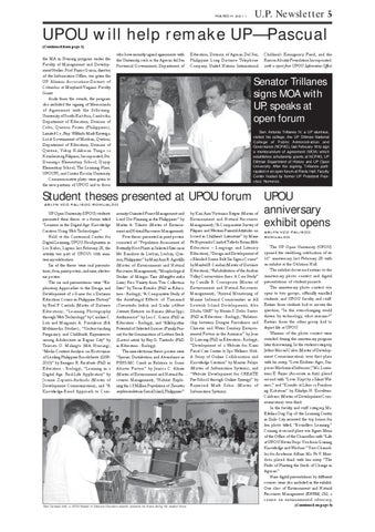 UPOU will help remake UP—Pascual (Continued from page 1)