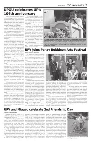 UPV and Miagao celebrate 2nd Friendship Day As in May last year, UP Visayas (UPV) and the Municipality of Miagao marked Friendship Day last May 31. Officials from Miagao led by Mayor Julieta Flores and from UPV led by Chancellor Rommel Espinosa joined their constituents in the one-day affair which started with a Mass at the Sto. Tomas de Villanova Parish Church. A soft launch of the Miagao Museum located in the right wing of the church followed. An opening program at the town plaza also marked the friendship day which also featured friendly games (larong pinoy and ball games) between the two institutions. A Mini Food Conference organized by the UPV School of Technology and the