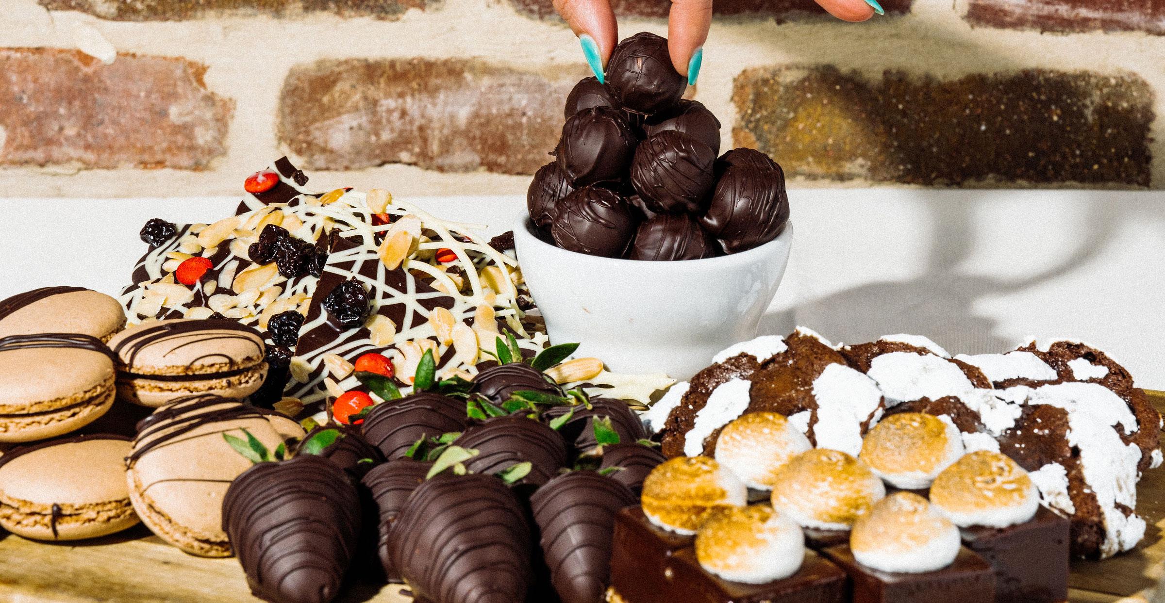 homemade truffles, chocolate covered strawberries, chocolate bark, mini s’mores, crinkle cookies