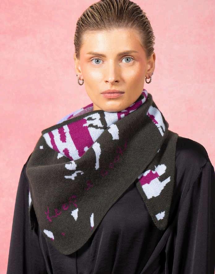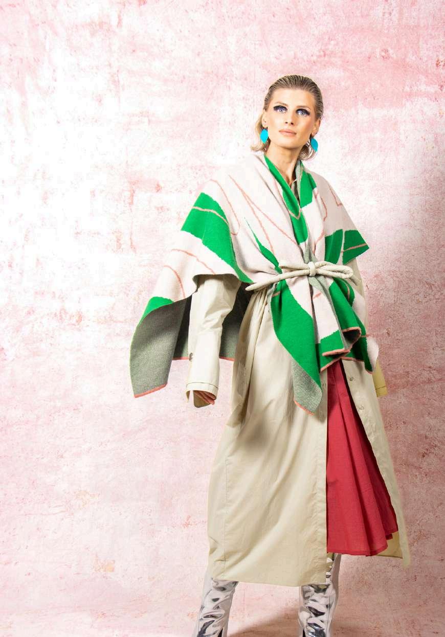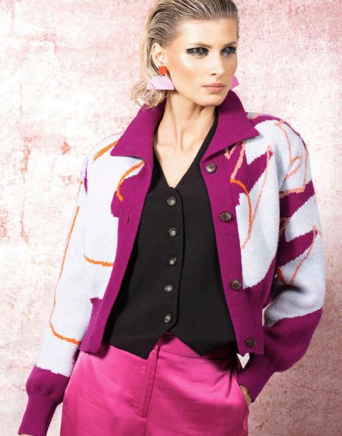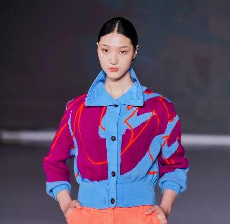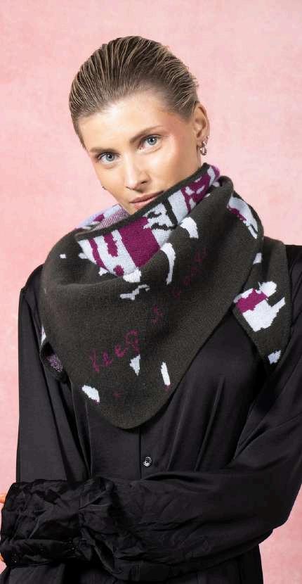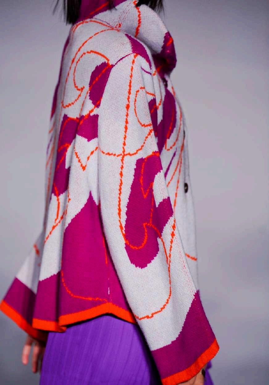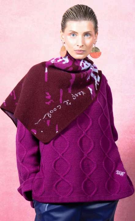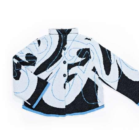 This collection is inspired by urban typography, we have handdrawnscaledcurvyletters fromourbrandnamein varying street inspired colours and designs. We knit in jacquard with birds eye on the other side making each piecereversibleshowingtheseamasadesignfeature.We fully fashion our garments where possible to reduce yarn wastage.