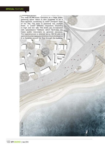 The base of the tower functions as a large public gathering space which is also imagined to be a ferry terminal connecting to water transport hubs of the city. The base is pixelated into multiple levels to create different responses according to high and low tide. The levels are incorporated with ‘peizoelectric’ surfaces which facilitates the heavy public movement to generate electricity. The superstructure is oriented along NW-SE axis to optimize its solar exposure, minimize the wind resistance & to facilitate smooth air flow through the building.