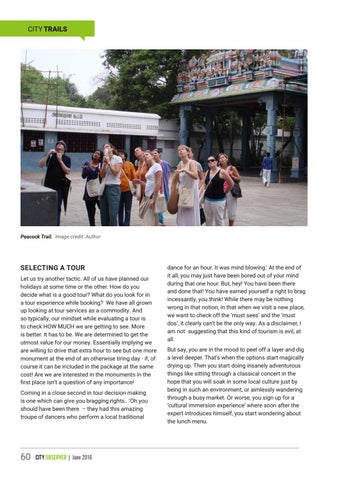 SELECTING A TOUR Let us try another tactic. All of us have planned our holidays at some time or the other. How do you decide what is a good tour? What do you look for in a tour experience while booking? We have all grown up looking at tour services as a commodity. And so typically, our mindset while evaluating a tour is to check HOW MUCH we are getting to see. More is better. It has to be. We are determined to get the utmost value for our money. Essentially implying we are willing to drive that extra hour to see but one more monument at the end of an otherwise tiring day - if, of course it can be included in the package at the same cost! Are we are interested in the monuments in the first place isn’t a question of any importance! Coming in a close second in tour decision making is one which can give you bragging rights.. ‘Oh you should have been there – they had this amazing troupe of dancers who perform a local traditional