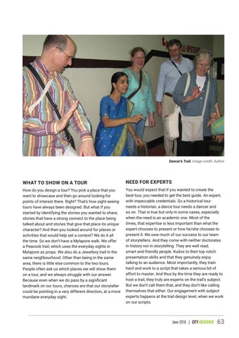 How do you design a tour? You pick a place that you want to showcase and then go around looking for points of interest there. Right? That’s how sight-seeing tours have always been designed. But what if you started by identifying the stories you wanted to share; stories that have a strong connect to the place being talked about and stories that give that place its unique character? And then you looked around for places or activities that would help set a context? We do it all the time. So we don’t have a Mylapore walk. We offer a Peacock trail, which uses the everyday sights in Mylapore as props. We also do a Jewellery trail in the same neighbourhood. Other than being in the same area, there is little else common to the two tours. People often ask us which places we will show them on a tour, and we always struggle with our answer. Because even when we do pass by a significant landmark on our tours, chances are that our storyteller could be pointing in a very different direction, at a more mundane everyday sight.