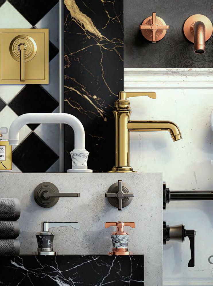 DOOR HARDWARE, cabinet knobs and pulls, plumbing fixtures, and bath accessories—these may seem like finishing touches on an otherwise completed design, but they are proof positive that sometimes the smallest details have the biggest impact. These complementary components can make or break the aesthetic and elevate a design from everyday to exceptional.