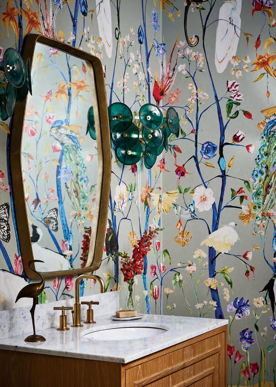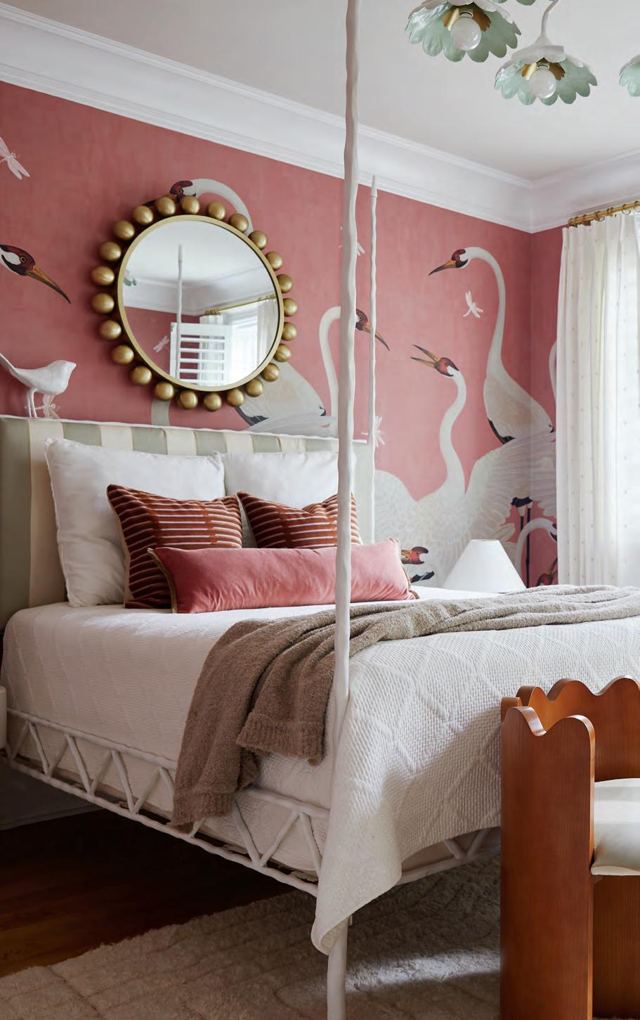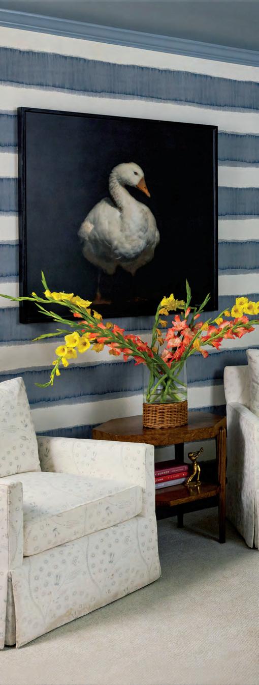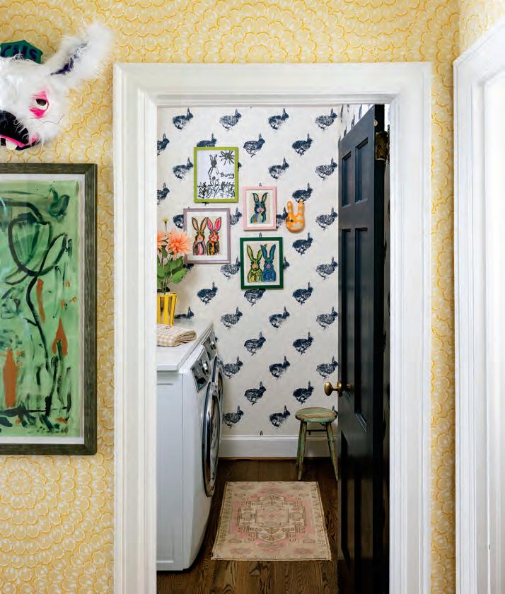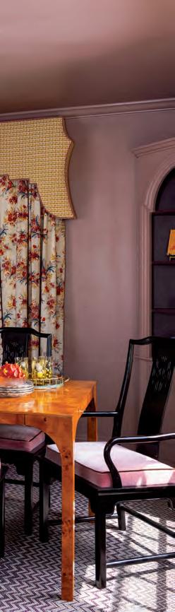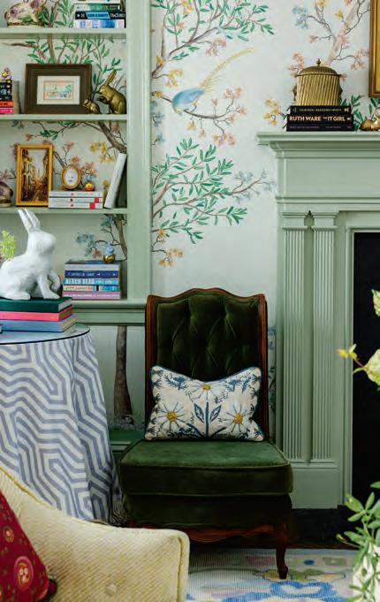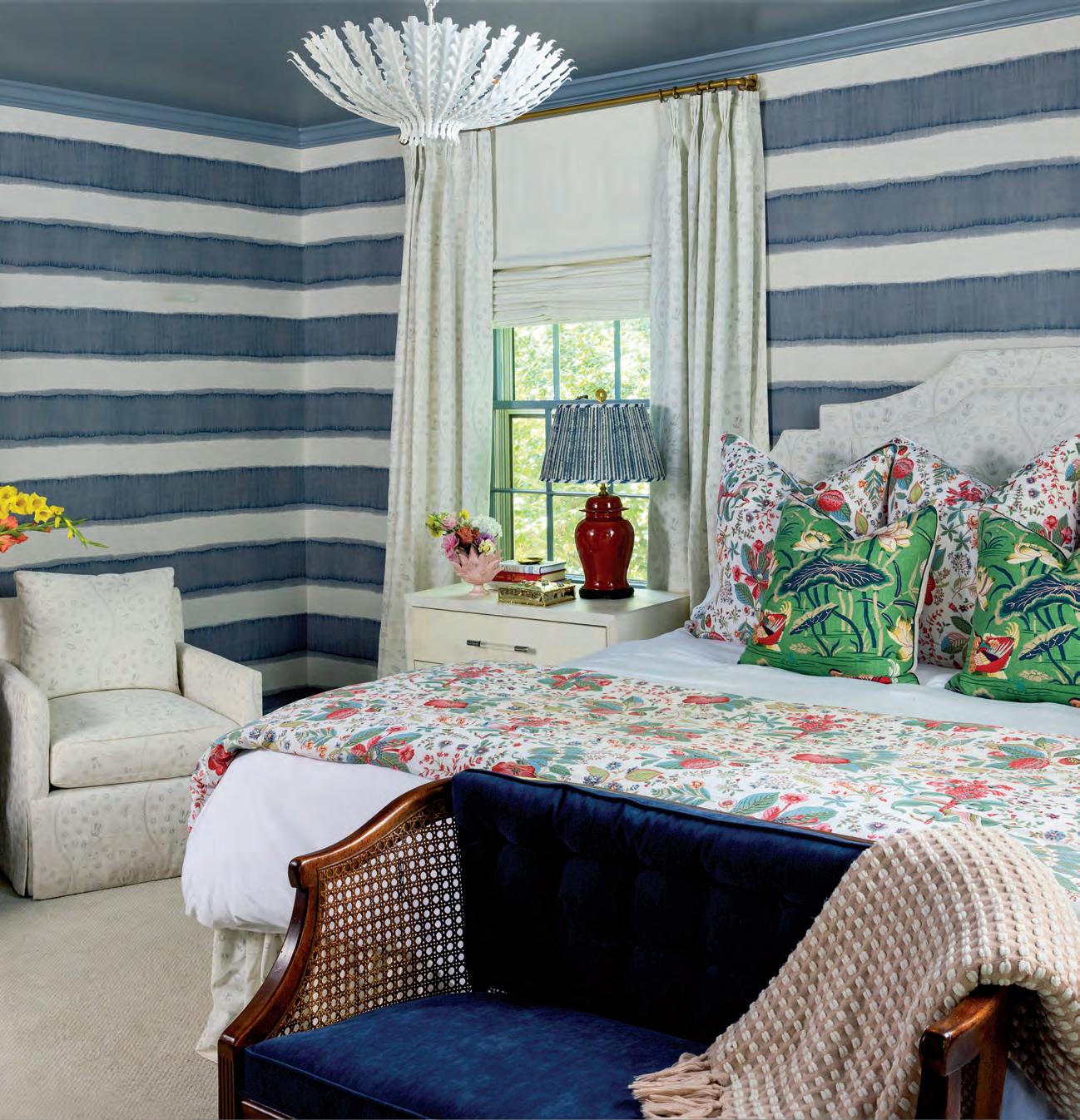 colorways with rich fabrics and textures. “Some of the wallpaper selections are bold but also traditional,” says Moody. “We tried to blend the new and the old. I don’t like for everything in a room to feel brand new. We tried to bring in a few vintage, or seemingly vintage, pieces into each room to balance everything.”