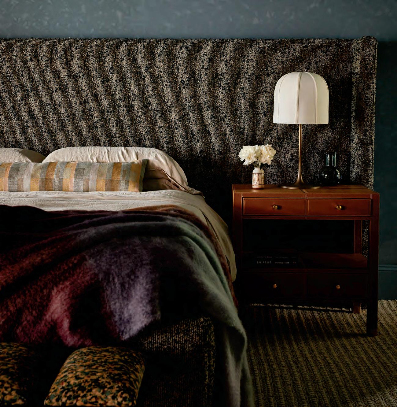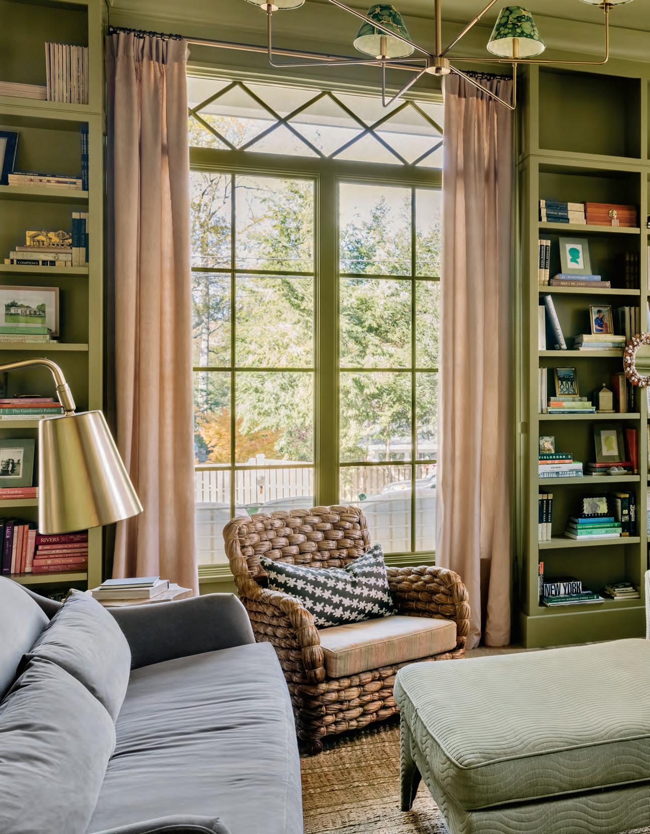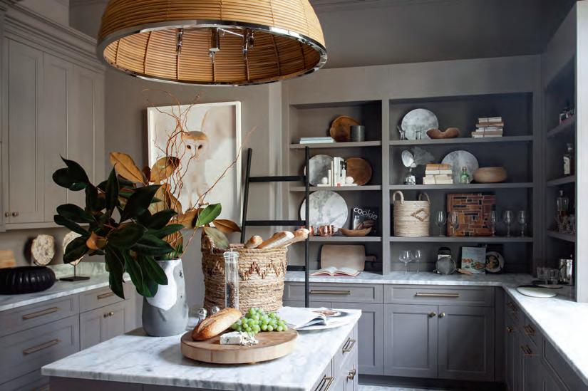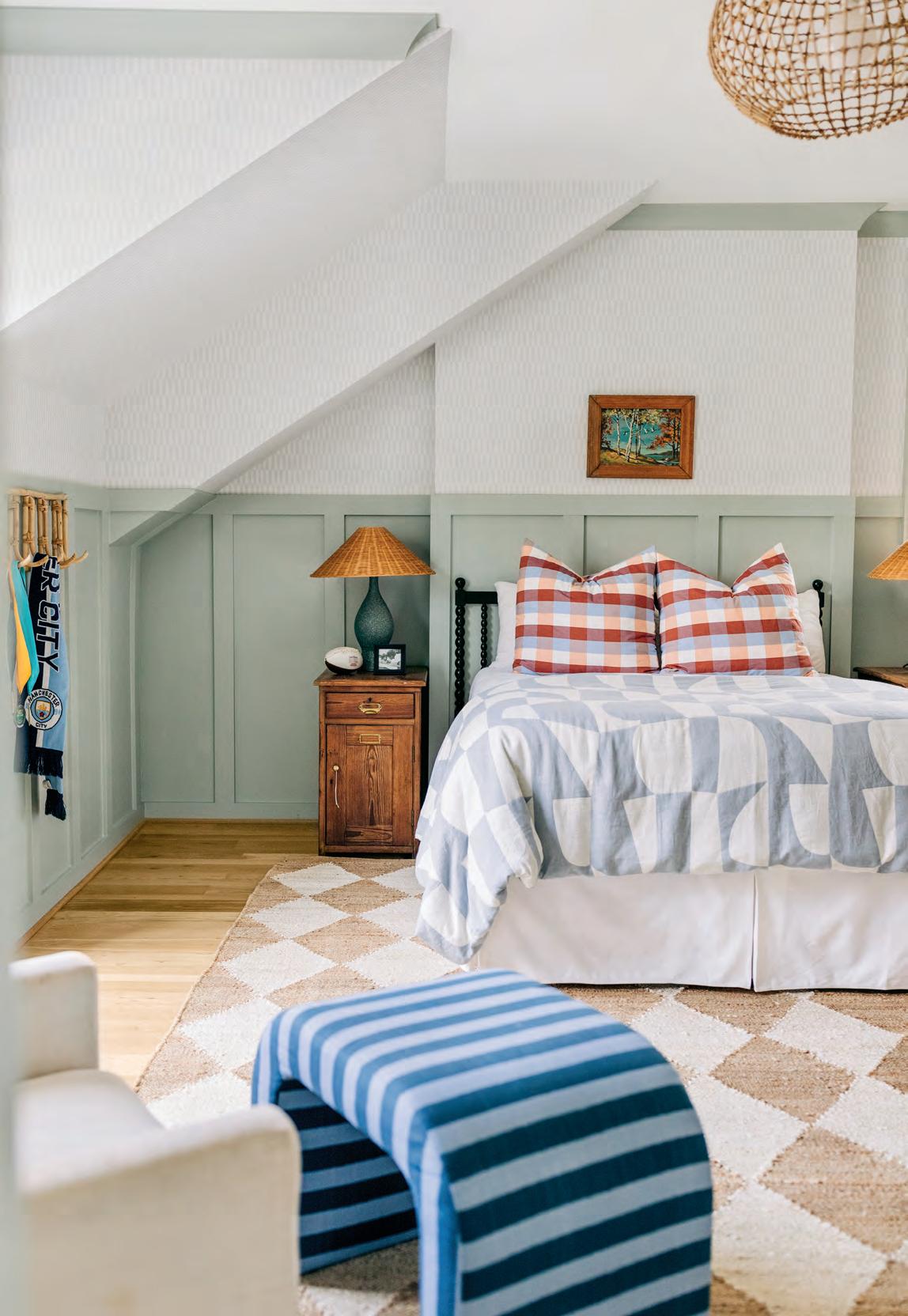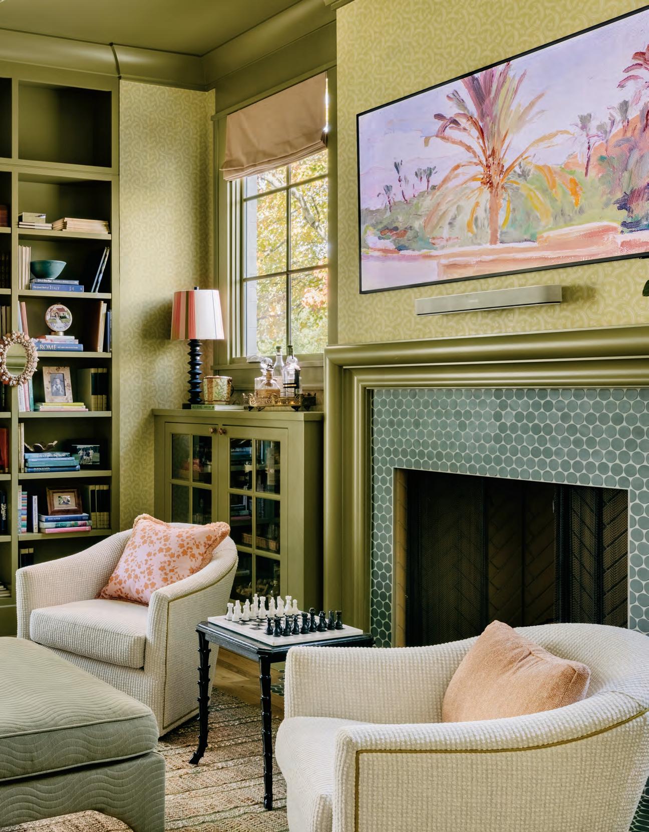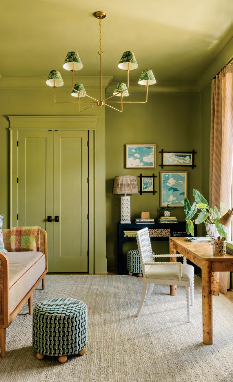 colorways with rich fabrics and textures. “Some of the wallpaper selections are bold but also traditional,” says Moody. “We tried to blend the new and the old. I don’t like for everything in a room to feel brand new. We tried to bring in a few vintage, or seemingly vintage, pieces into each room to balance everything.”