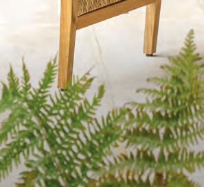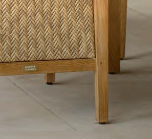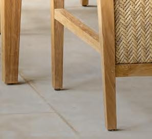 color and structural integrity for many seasons. While its finish echoes the classic appeal of rattan, its highperformance material and expert craftsmanship offers unparalleled resilience. Likewise, the responsibly sourced teak, known for its natural oils and dense grain, offers tremendous resistance to the effects of pests, weather, and aging while exuding timeless elegance sure to last generations.