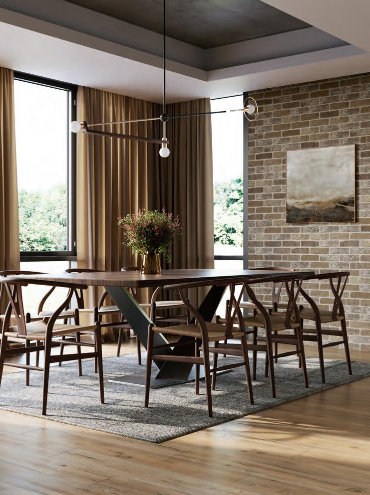 including orange, yellow, olive green, deep blue, and red, and five earth-tone matte finishes. Manufactured by General Shale’s Ohio-based Summitville Tile, this line is a sleek, modern choice with vibrant colors. “Glazed thin brick combines contemporary sophistication and timeless craftsmanship with unparalleled durability in both interior and exterior settings,” explains Guinn.