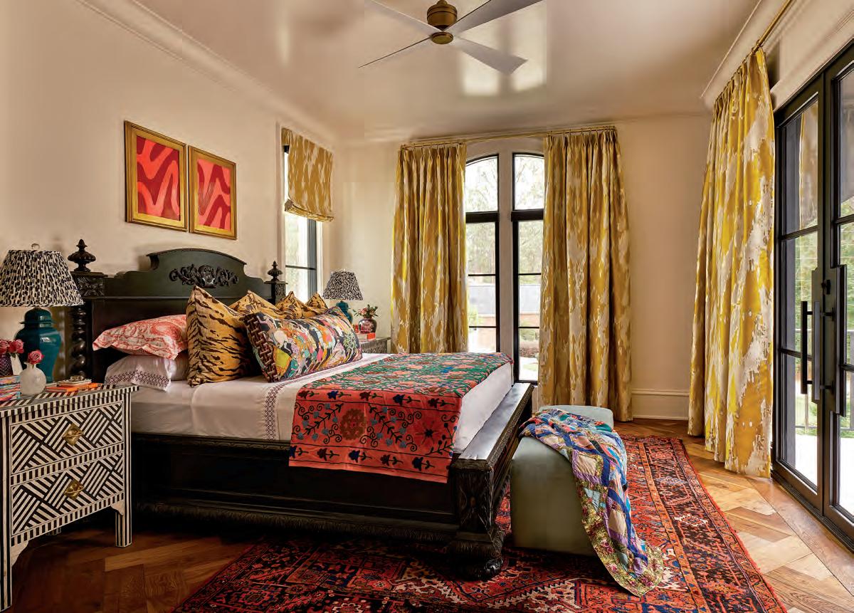 With no room left untouched, the project became a lesson in how to design with color—without overdoing it. “We wanted to incorporate as much pattern and color as possible but in an elegant, sophisticated way,” says Moody—a target easily hit when the designer and homeowner are in funky sync.