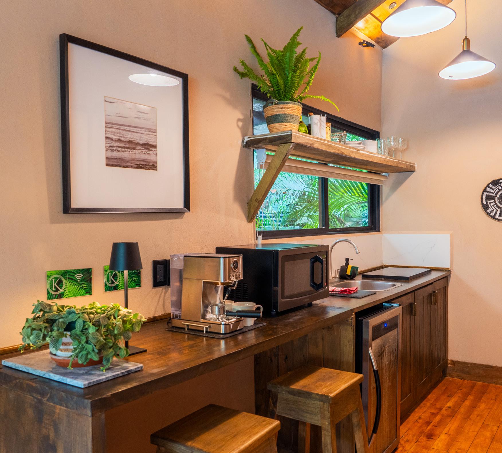 The elegantly appointed accommodations come with fully equipped kitchenettes, complete with a refrigerator, microwave, stovetop, and coffee machine, ensuring guest convenience. A flat-screen TV enhances the contemporary ambiance, creating a perfect blend of comfort and sophistication tailored to the discerning traveler.