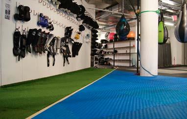 neuen Räumlichkeiten in der Ritterstraße umgezogen. Das heißt mehr Fläche und auch mehr Verantwortung. Aus den ehemaligen Lasertagräumen haben Peter und sein Team aus zehn Trainer:innen eine große Halle mit mehreren Räumen und eigens hochgezogenen Wänden geschaffen. Drei Mattenplätze gibt es, einer davon etwas ruhiger in einem separaten Raum gelegen und einen Ring, dazu 19 Boxsäcke und Birnen, an den Wänden hängt das „Zubehör“: Pratzen, Boxhandschuhe in allen Größen und Formen. Für die DBMA, das steht für Dog Brothers Martial Arts, sprich kämpfen mit allem, was man hat, einschließlich treten, schlagen, halten, hebeln und wirbeln, gibt es eine ganze Ecke voll mit Zusatzmaterial: Dummy-Äxte, -Messer und -Schwerter.