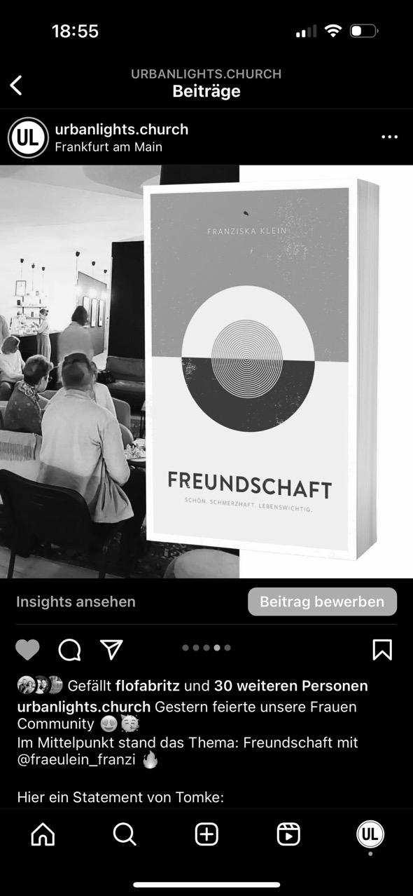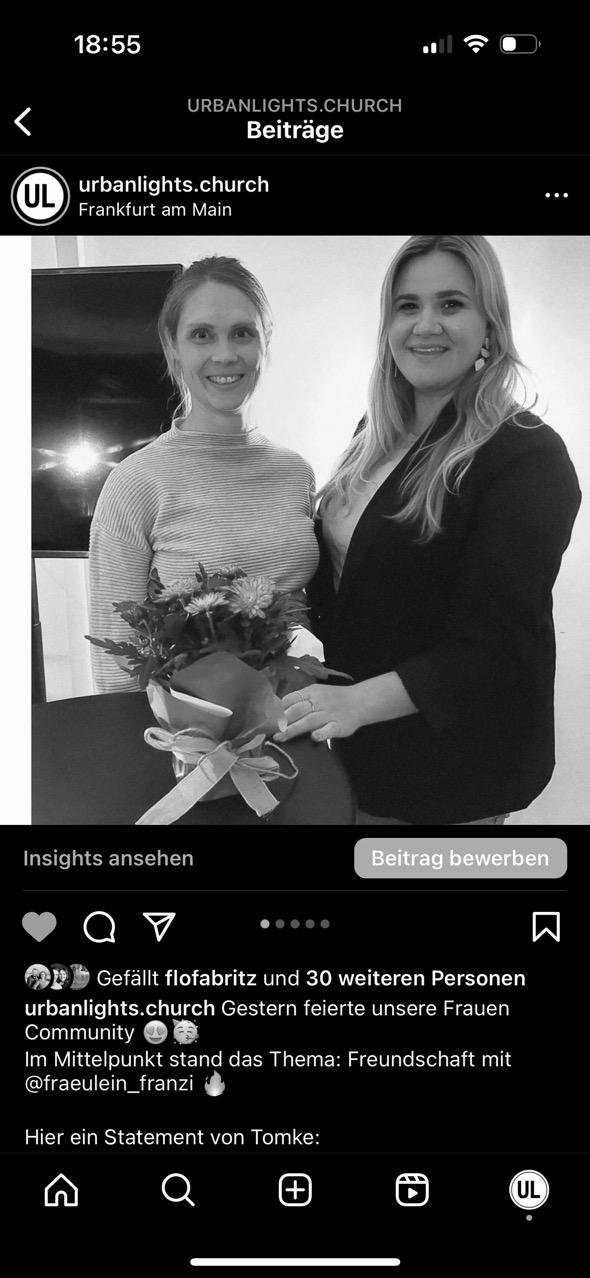 Wir haben 2024. Zweitausendvierundzwanzig! Ist das nicht unglaublich? Vor uns liegt ein noch recht frisches Jahr, dass nur darauf wartet, von uns gestaltet zu werden. Da liegt viel Land vor uns, dass wir gemeinsam mit und für Jesus einnehmen wollen und DU wirst hier einen riesigen Unterschied machen können! Lasst uns auf den nächsten Seiten auf das vergangene Jahr zurückblicken, unsere errungenen Siege gemeinsam feiern und auch einen Ausblick auf das vor uns liegende Jahr geben. Es gibt so viel, für das wir dankbar sein können, sowohl als Individuen als auch als Urban Lights Familie in Frankfurt und in der Rhein-Main-Region und online. Es ist uns eine Freude, gemeinsam mit dir auf der Reise zu sein, egal an welchem Punkt sich unsere Leben berühren. Es ist so viel in unserer Kirche passiert. Wir haben durch alle Bereiche hinweg gemerkt, wie Jesus Hoffnungsräume gebaut hat.