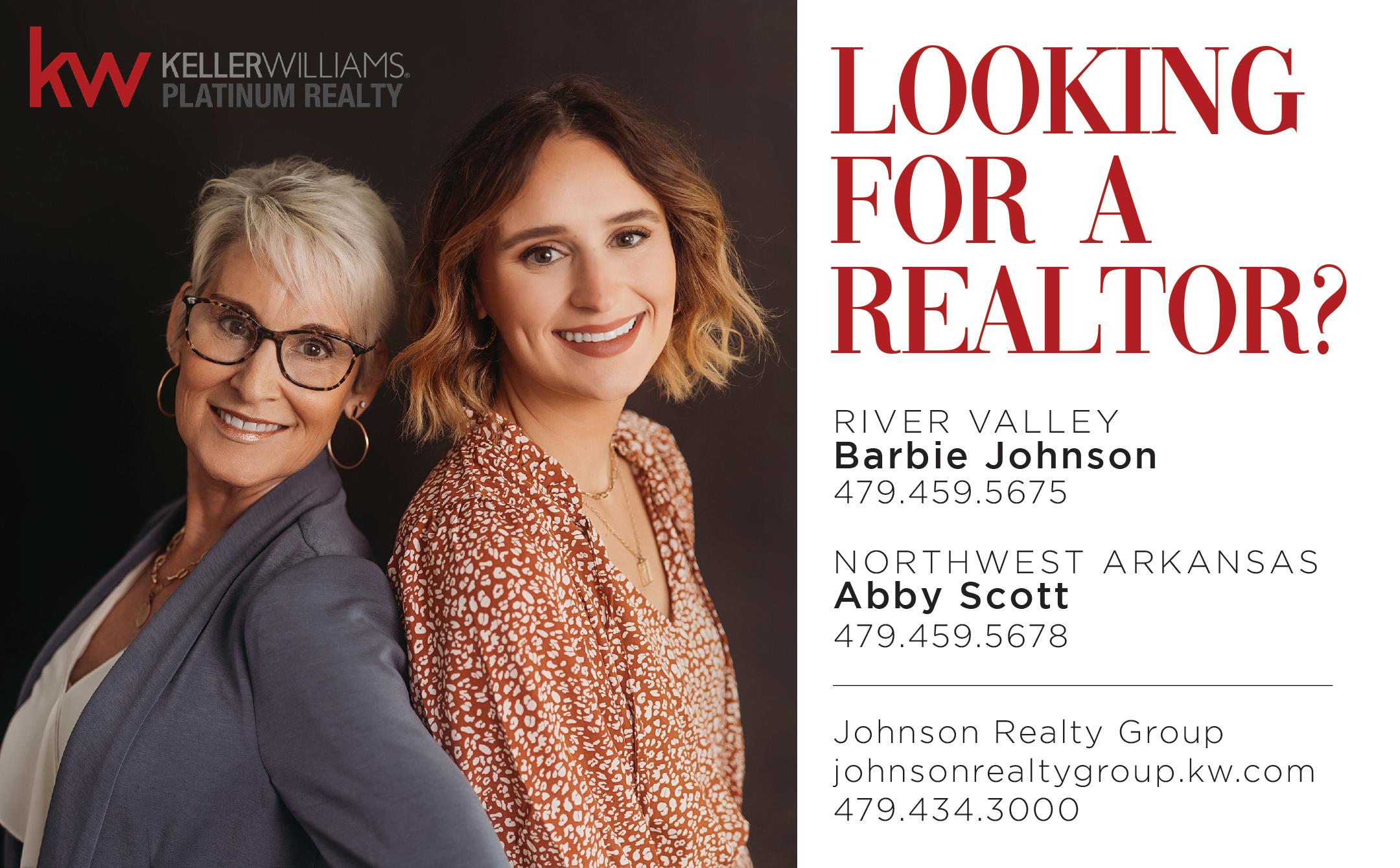 Johnson Realty Group lives in and serves the River Valley and Northwest Arkansas. With a combined 20+ years of experience, this mother/daughter team gives fun and friendly service in helping folks to buy, sell, or invest in Real Estate. We realize a home purchase is most likely the largest purchase most folks make, and our goal is to make it enjoyable throughout the process and help you get to your end goal, whether that be downsizing, upsizing, creating a homestead, investing, or moving into our area. In the River Valley, call Barbie Johnson for any of your Real Estate needs at 479-459-5675. In Northwest Arkansas, Abby Scott would love the opportunity to assist you with all your real estate needs! You can reach her at 479-459-5678.