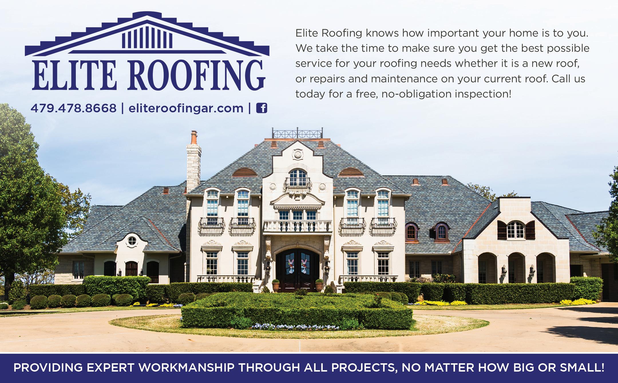 DO SOUTH ® MAGAZINE HOUSE AND HOME 7411 Ellis St., Ste. 200, Fort Smith 479.242.1267 cmcassetmanagement.com CMC Asset Management is a commercial/multifamily management company locally owned and operated in Fort Smith, Arkansas. We will use our customized security planning, tools, and services to help your investments grow. Contact us today and let us show you how we can maximize your return on investment and make your life easier! 3407 Industrial Park Rd., Van Buren 479.478.8668 eliteroofingllc@aol.com Elite Roofing is locally owned and operated. We were here when the last storm hit, we will be here when the next one does, and we will be here every day in between. We do residential and commercial roofing and are here to serve you with the best quality possible. We work with all insurance companies and are licensed and insured in both Arkansas and Oklahoma. At Elite Roofing we understand that your home will probably be the largest investment you will ever make. We take pride in knowing when it comes to your roofing needs, we have you covered!